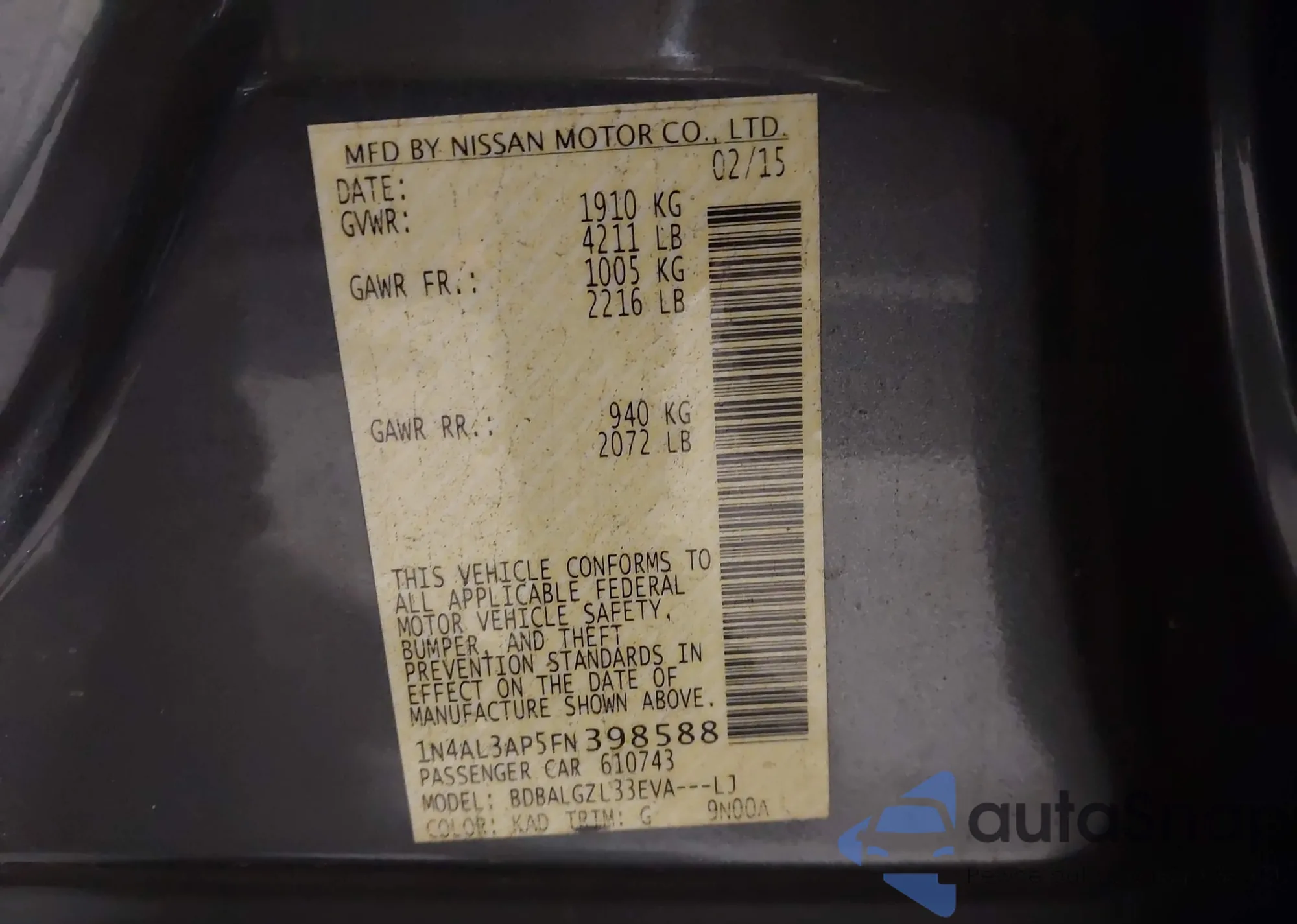 LOT: 43702974 VIN: 1N4AL3AP5JC219227