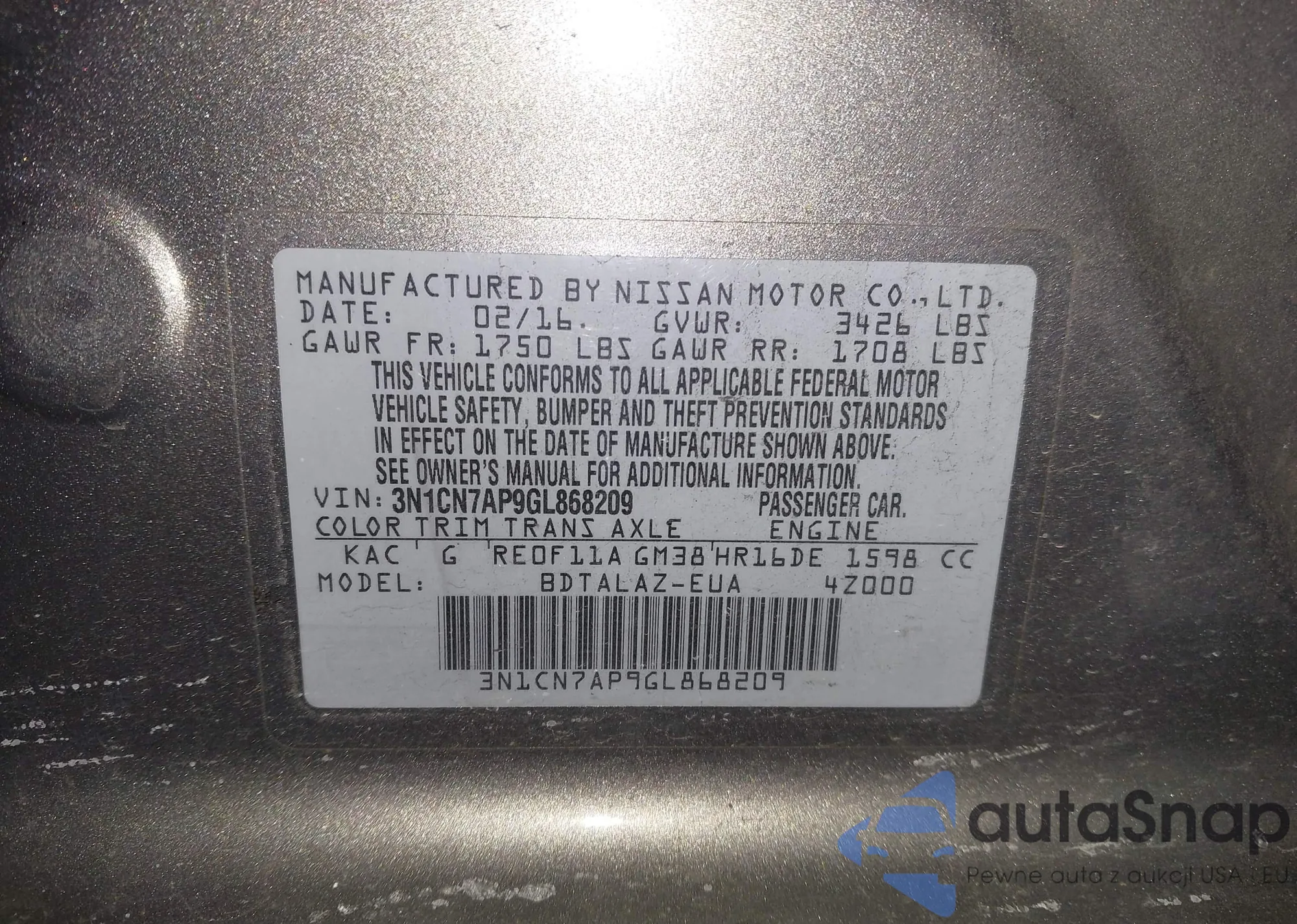 • VIN 3N1CN7AP9GL868209