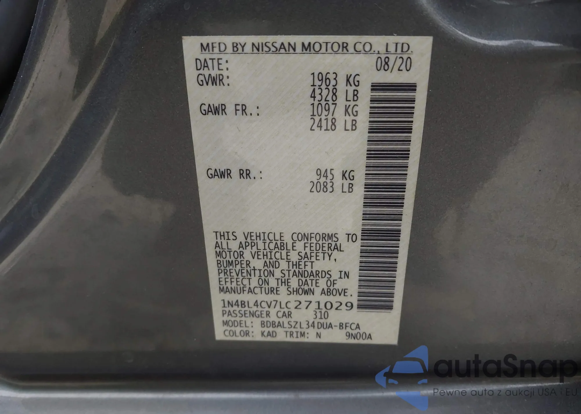 LOT: 44303771 VIN: 1N4BL4CV7LC271029