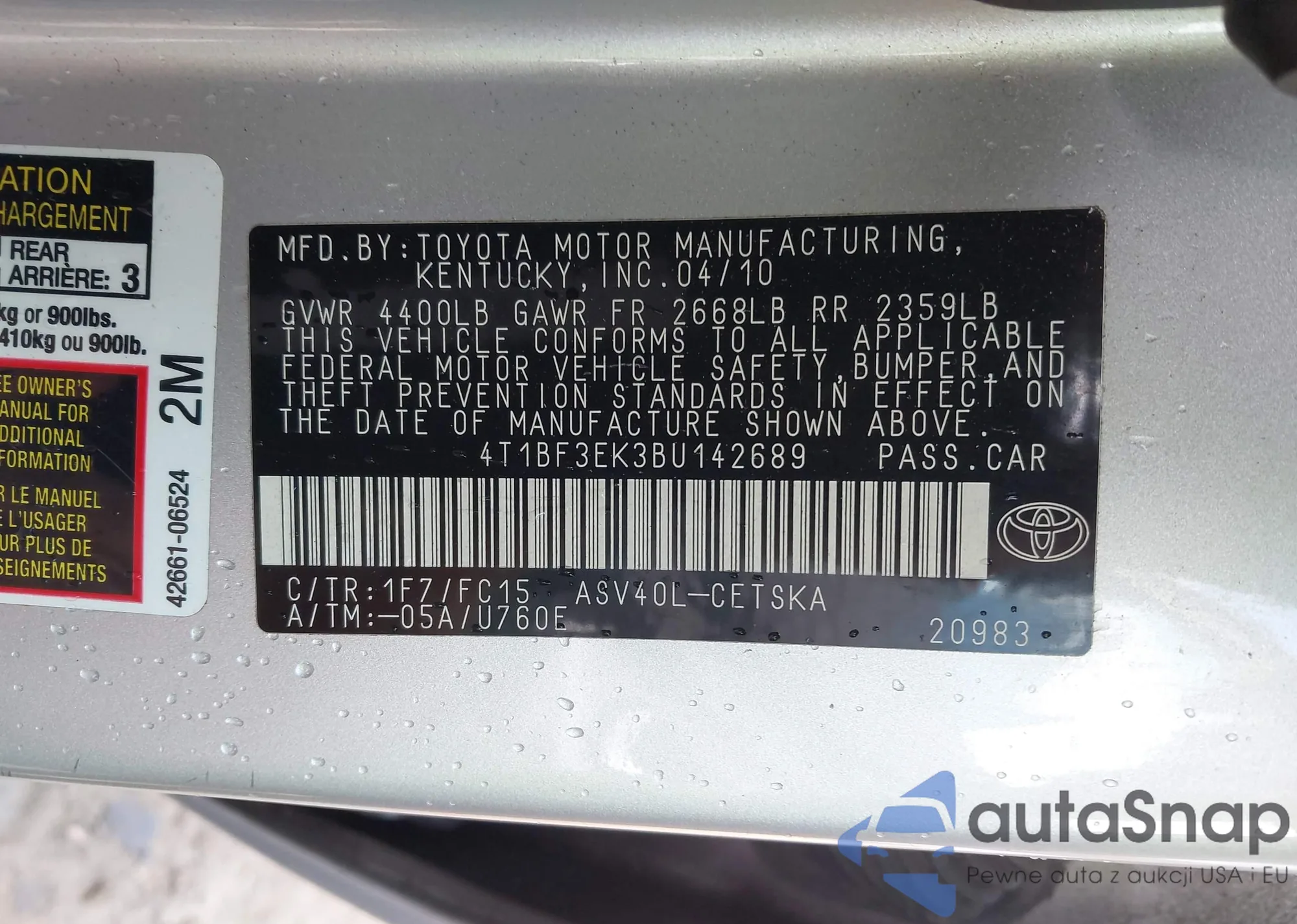 • VIN 4T1BF3EK3BU142689