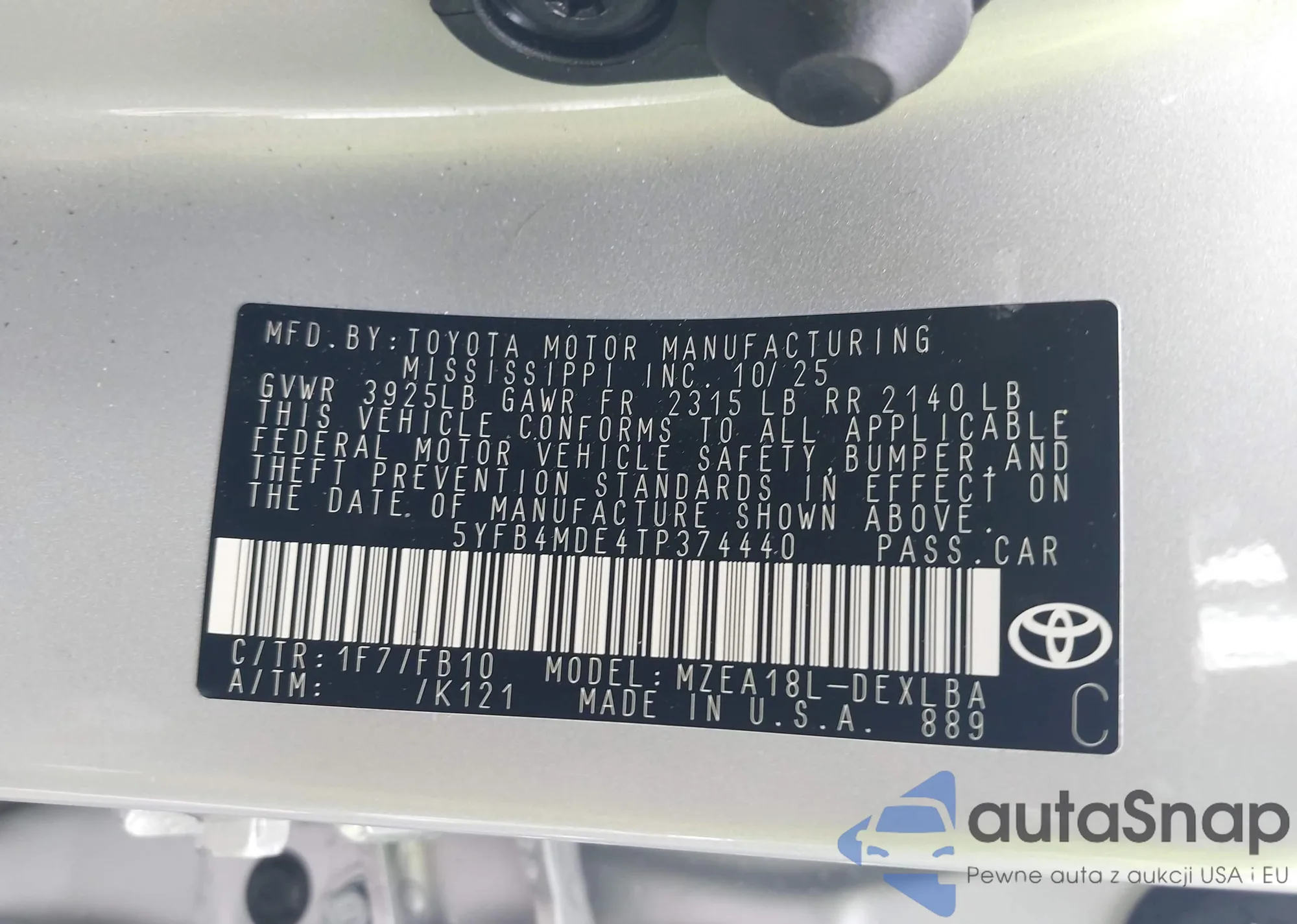 LOT: 44360138 VIN: JTMAB3FV8MD010065