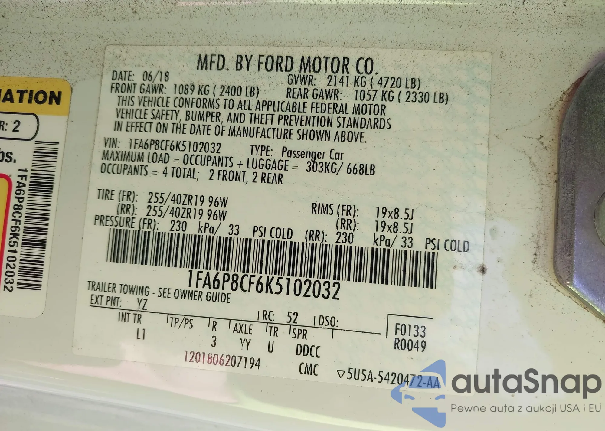 • VIN 1FA6P8CF6K5102032