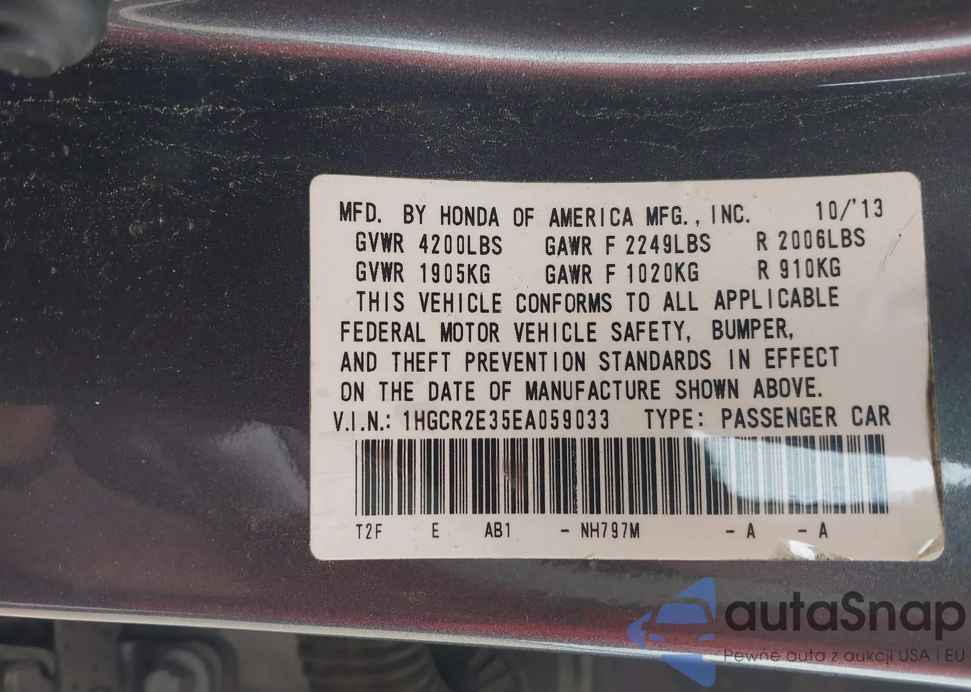 • VIN 1HGCR2E35EA059033