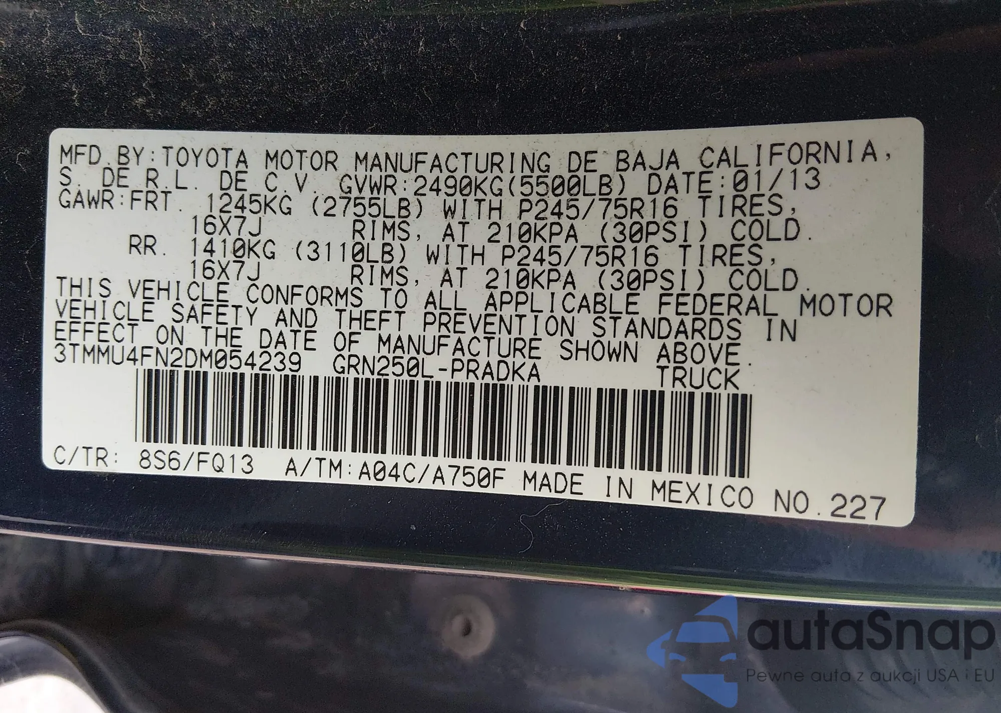 • VIN 3TMMU4FN2DM054239