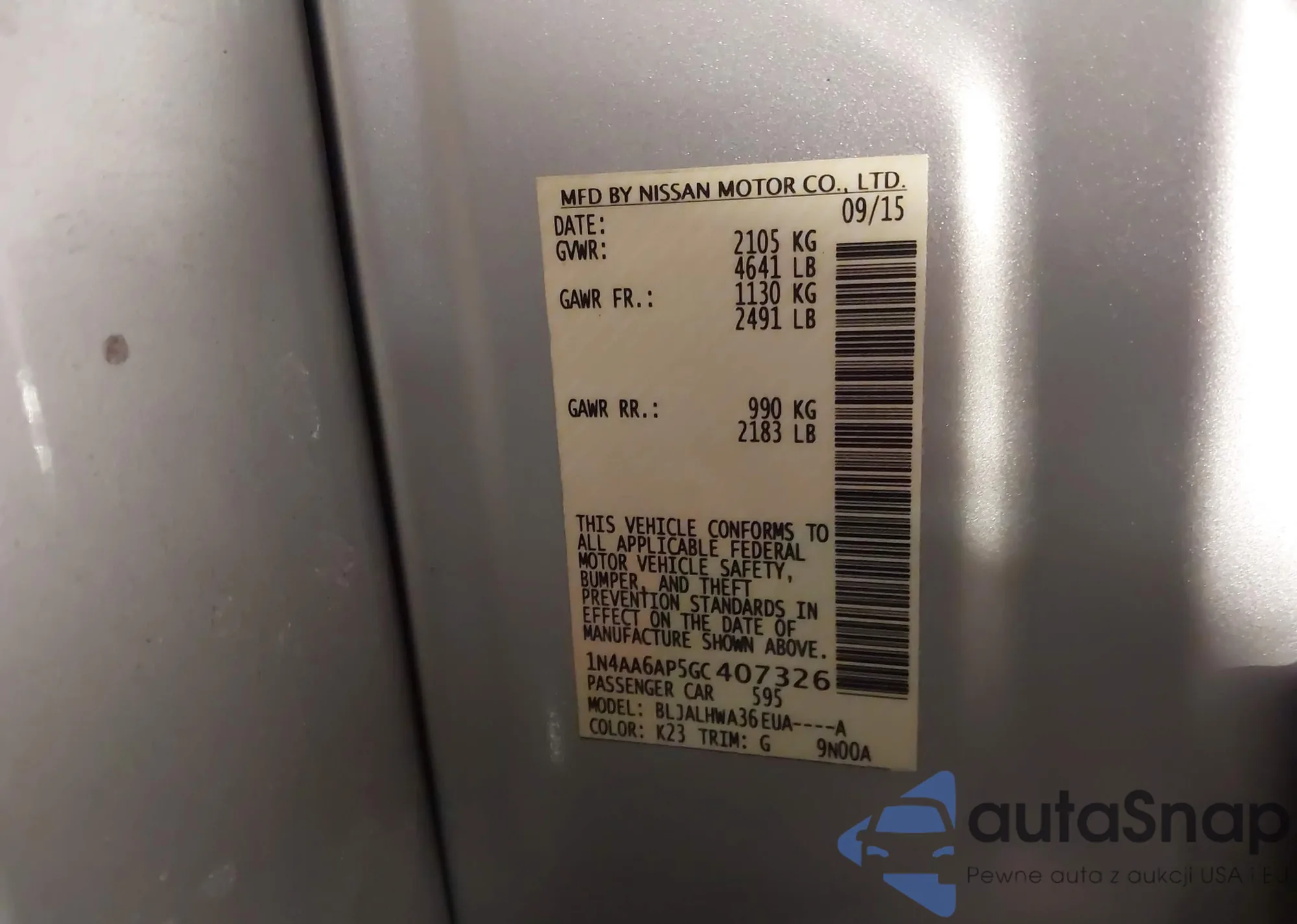 • VIN 1N4AA6AP5GC407326