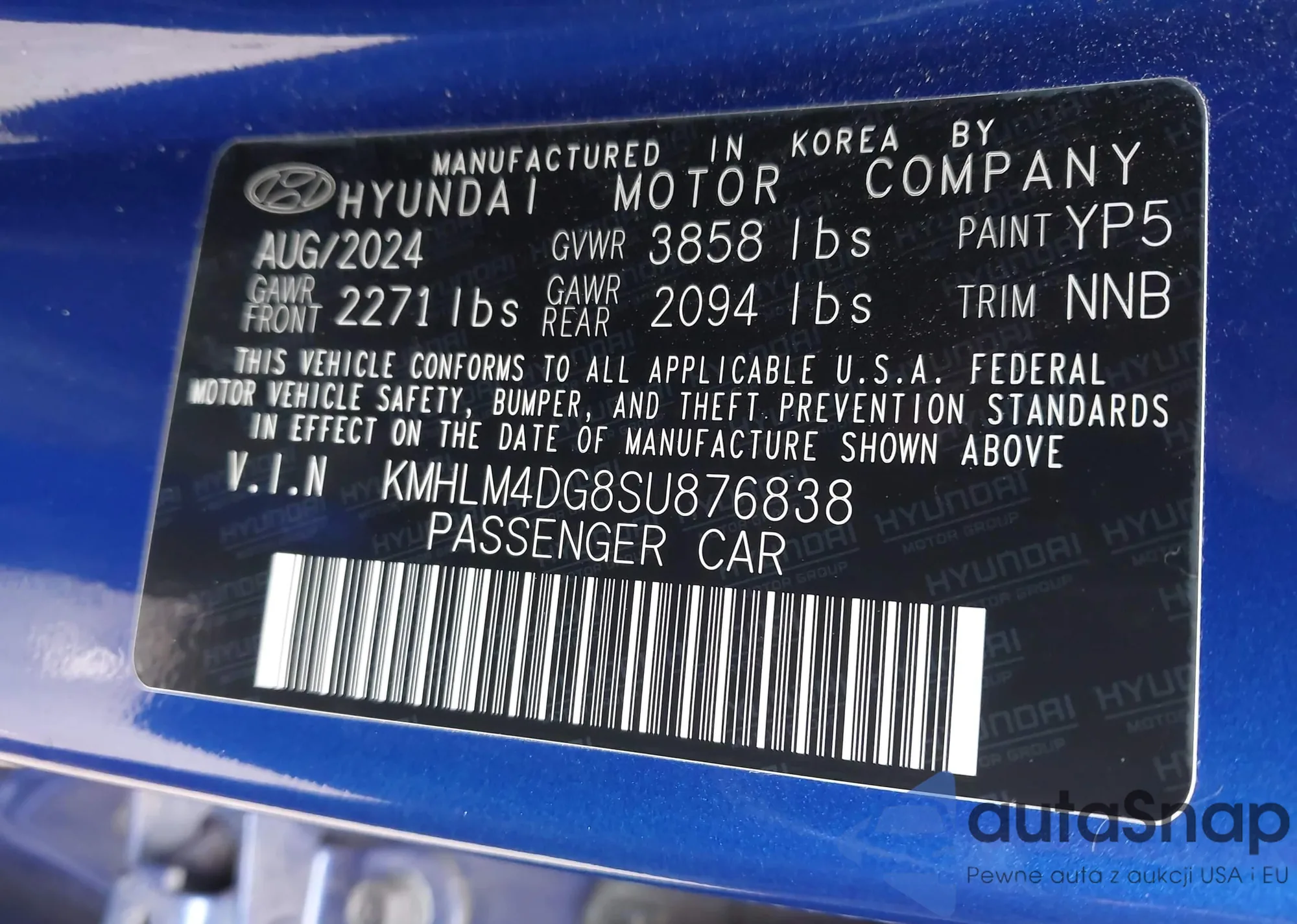LOT: 43947694 VIN: KMHLM4DG8SU876838