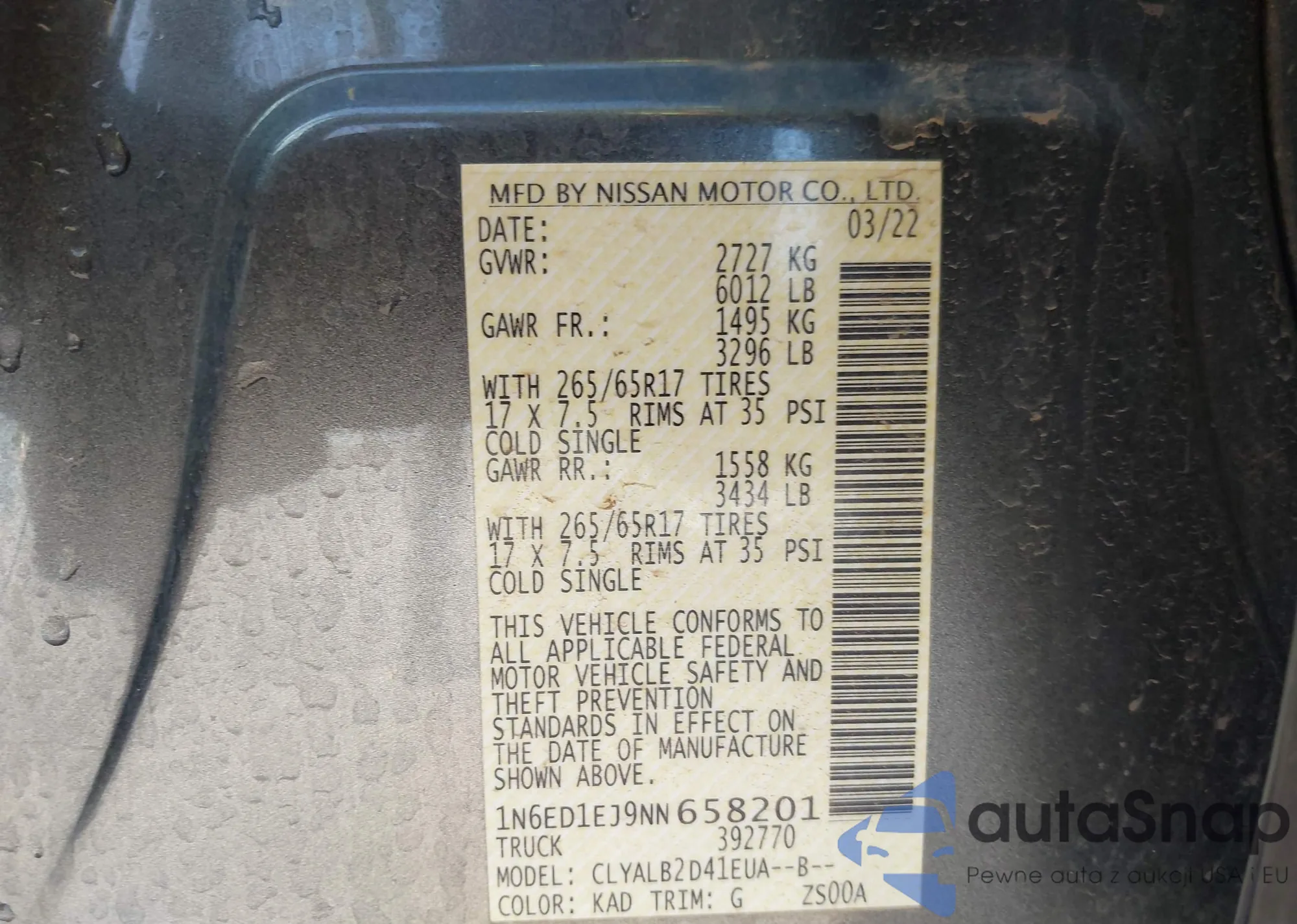 • VIN 1N6ED1EJ9NN658201