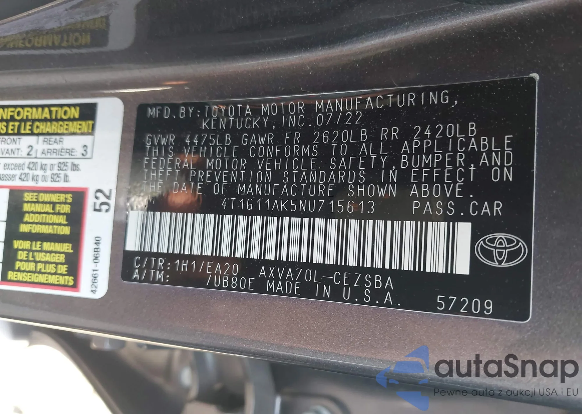 • VIN 4T1G11AK5NU715613