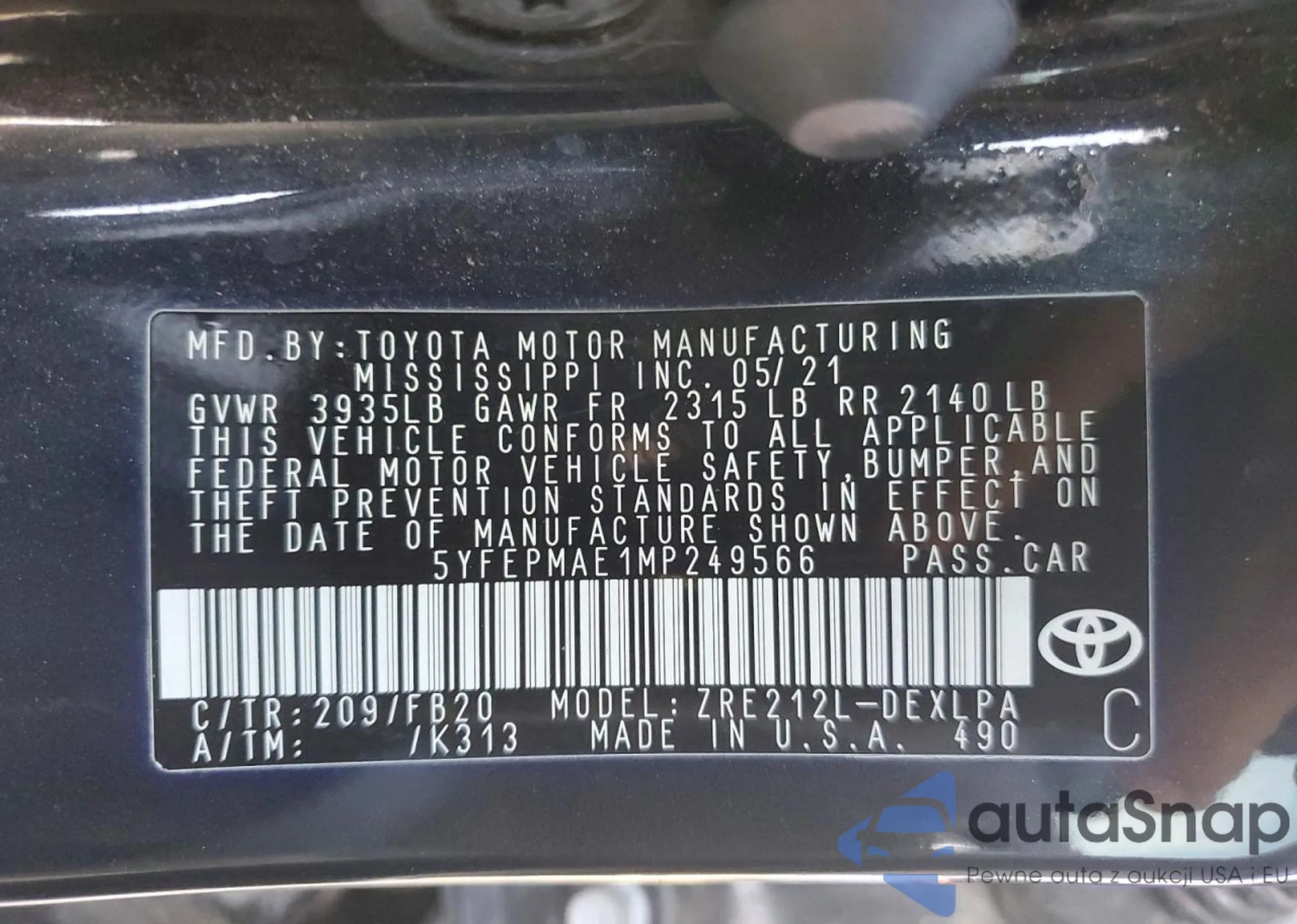 • VIN 4T1BE46K19U287375