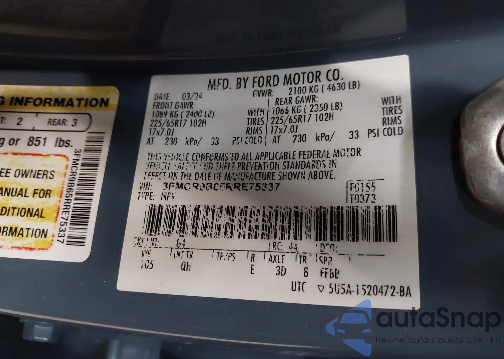 • VIN 3FMTR9B65RRE75337