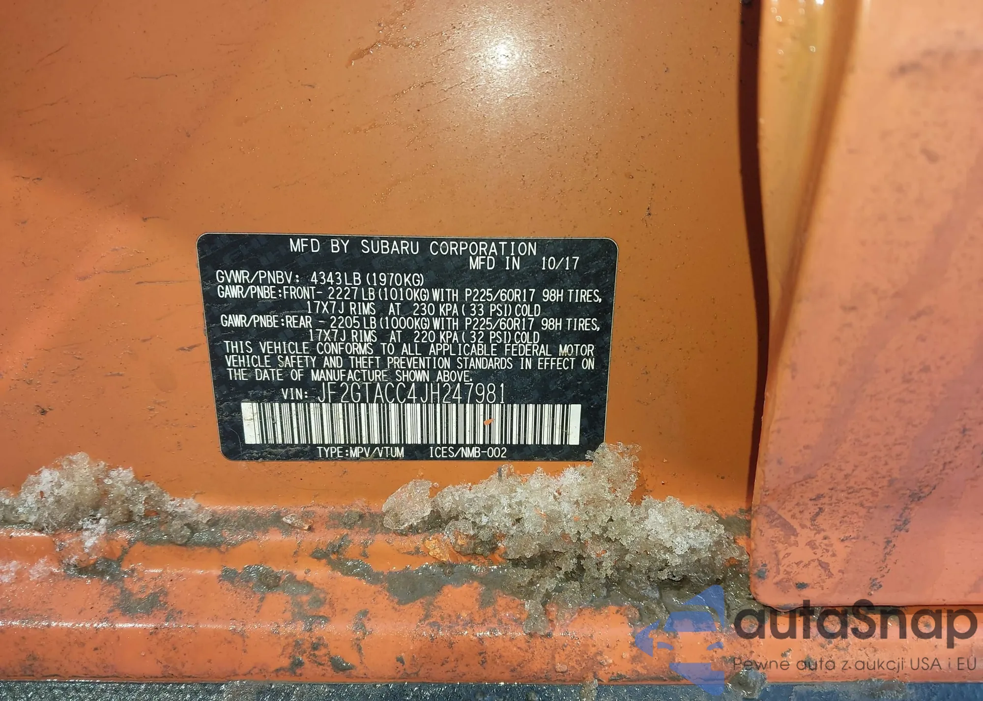 • VIN JF2GTACC4JH247981