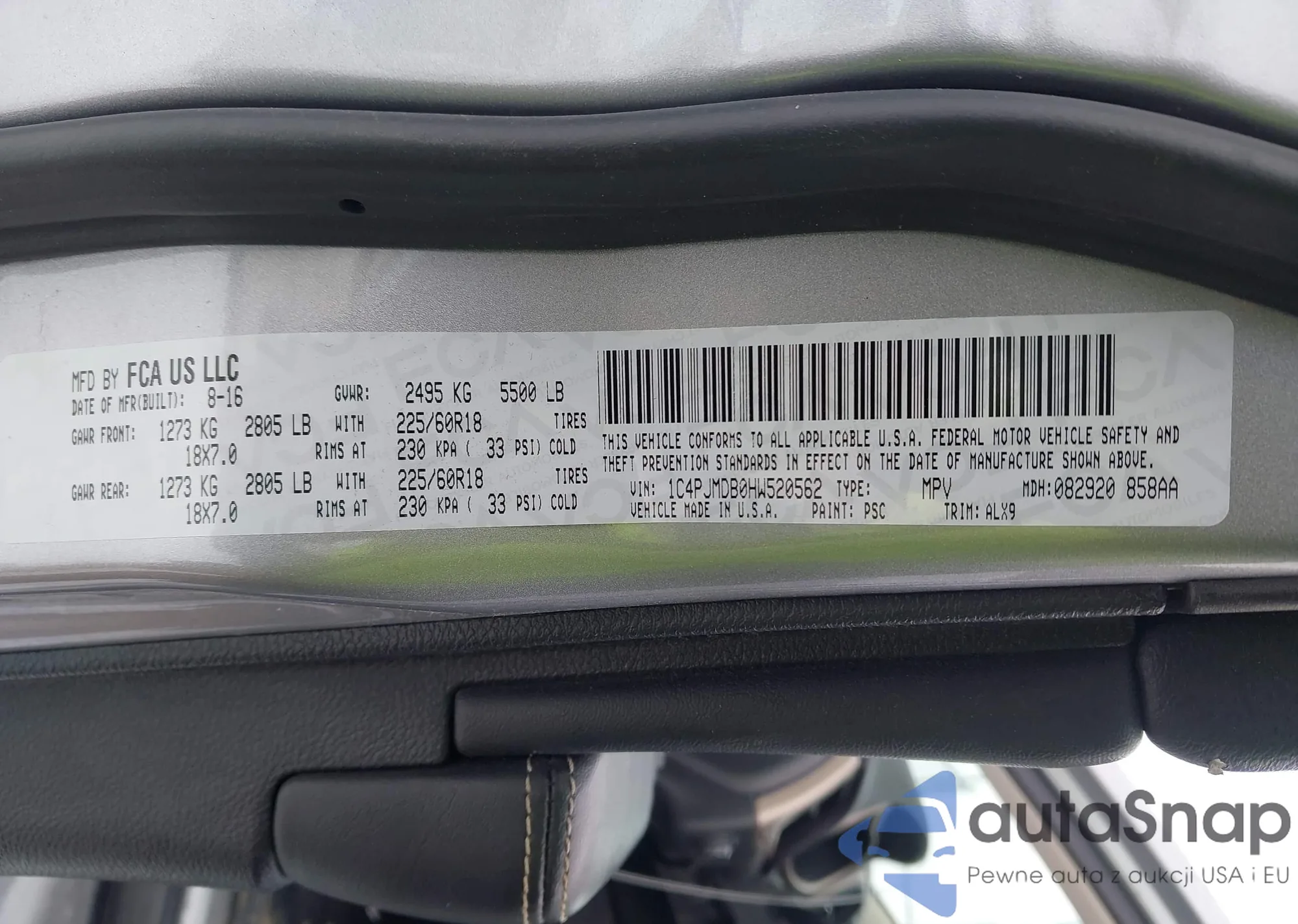 LOT: 44032561 VIN: ZACCJABBXHPF24289
