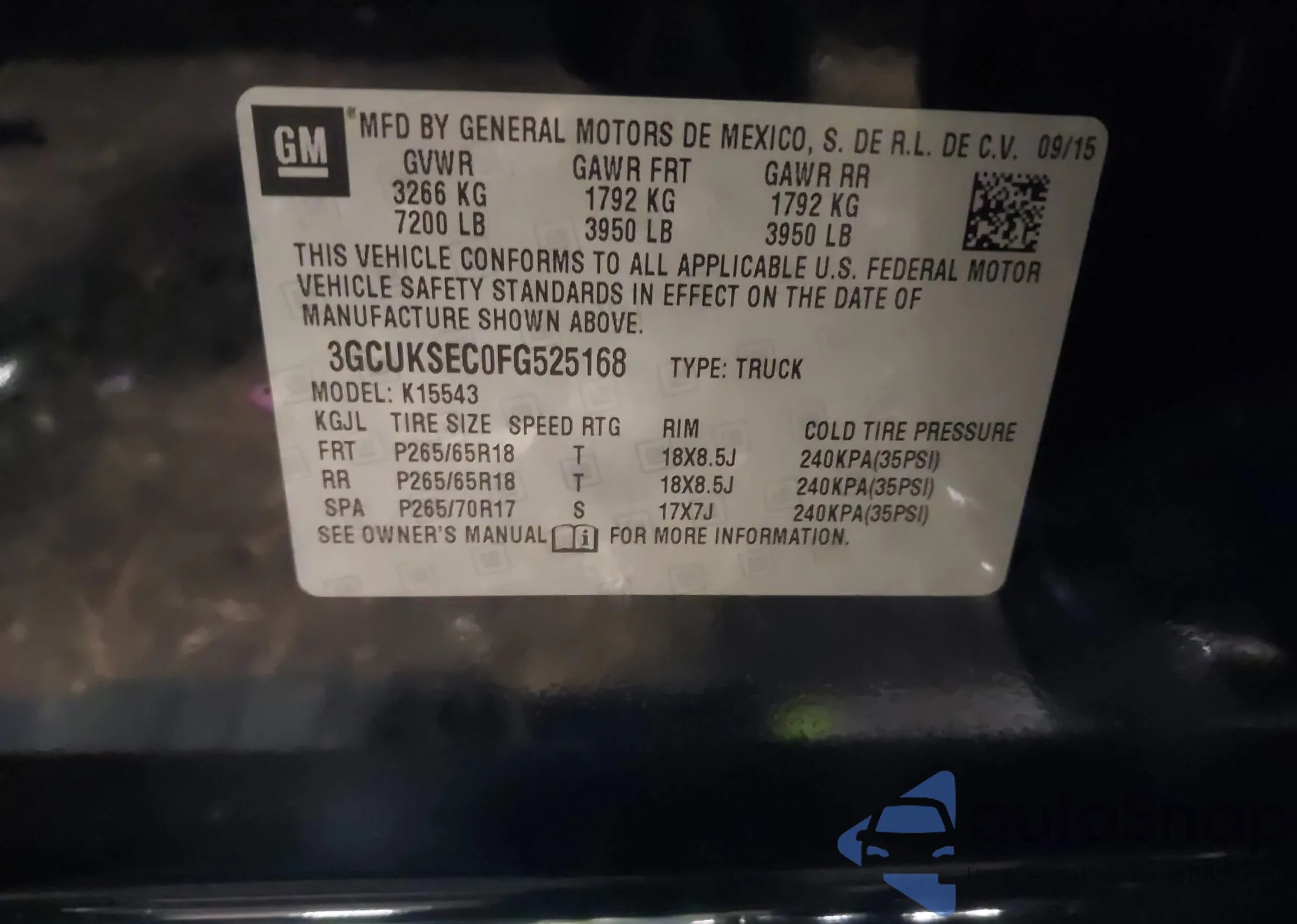 • VIN 3GCUKSEC0FG525168