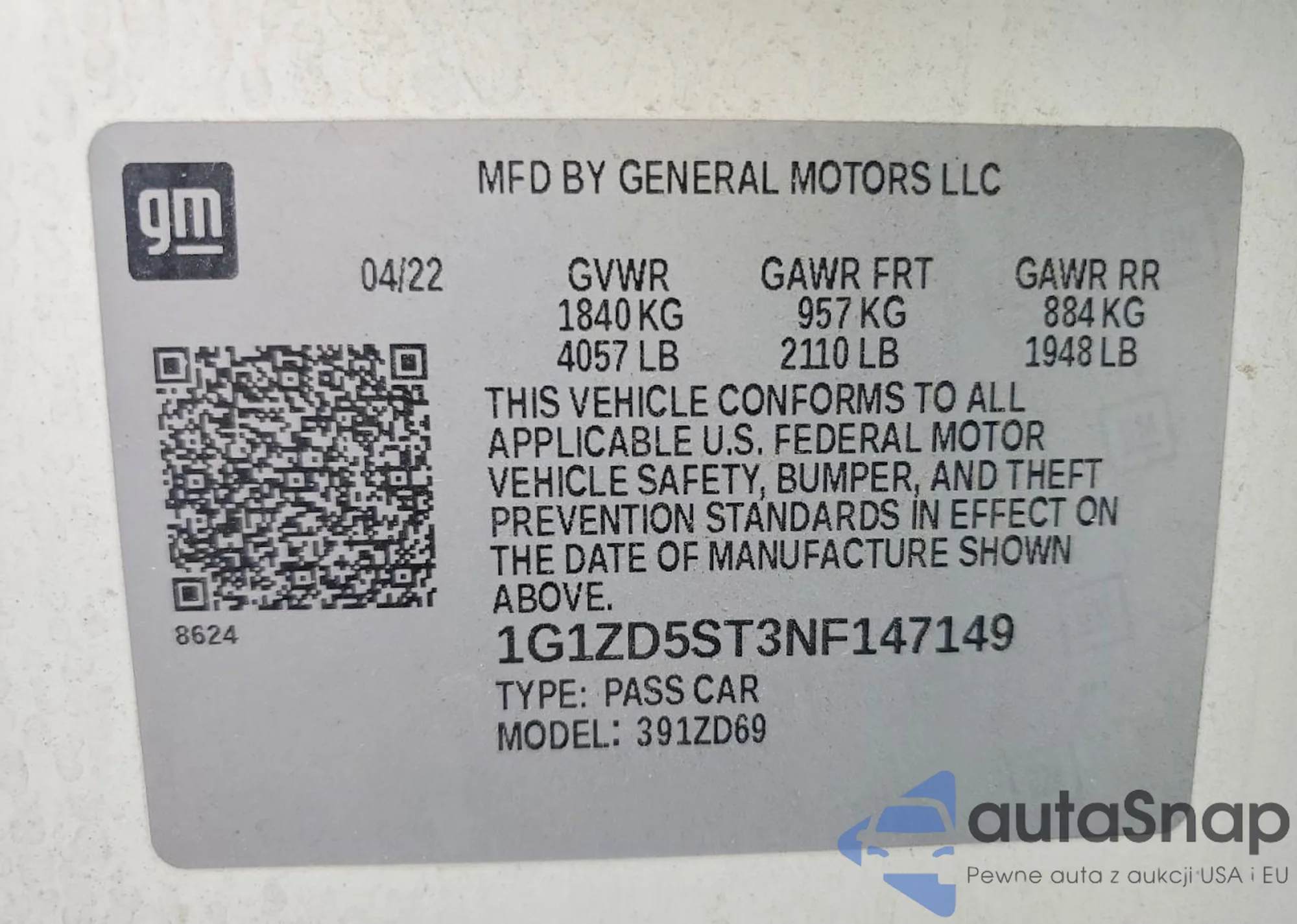 LOT: 73651145 VIN: 1G1ZD5ST3NF147149