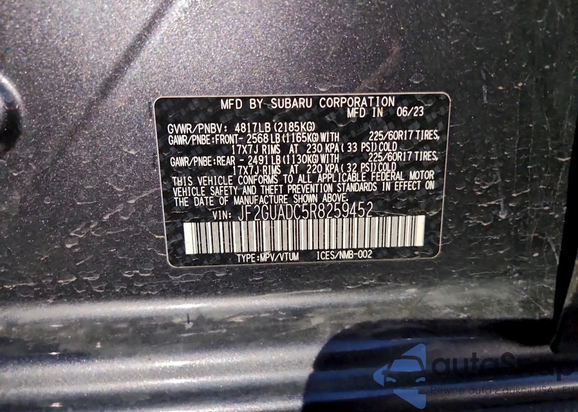 • VIN JF2GUADC5R8259452