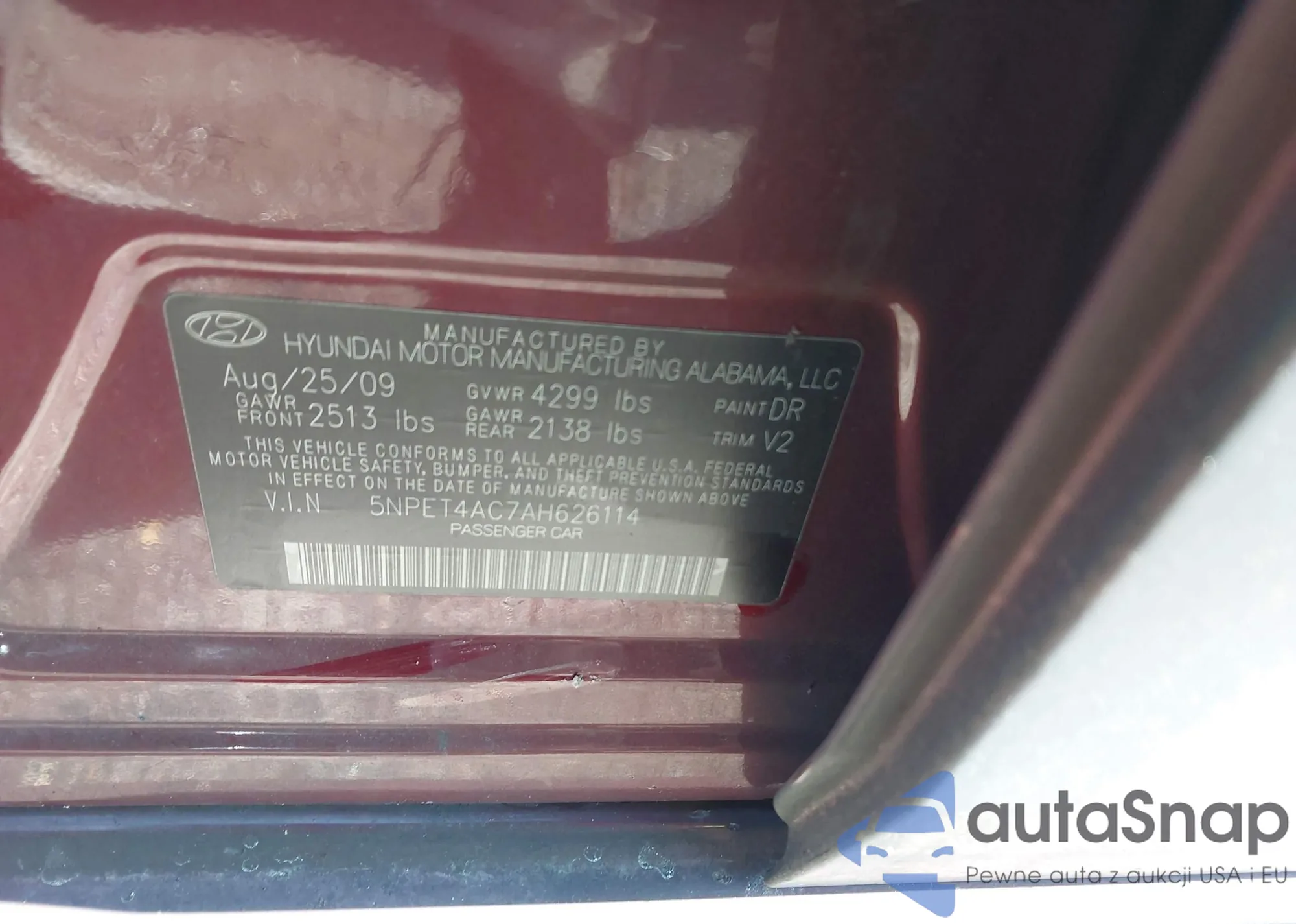 • VIN 5NPET4AC7AH626114