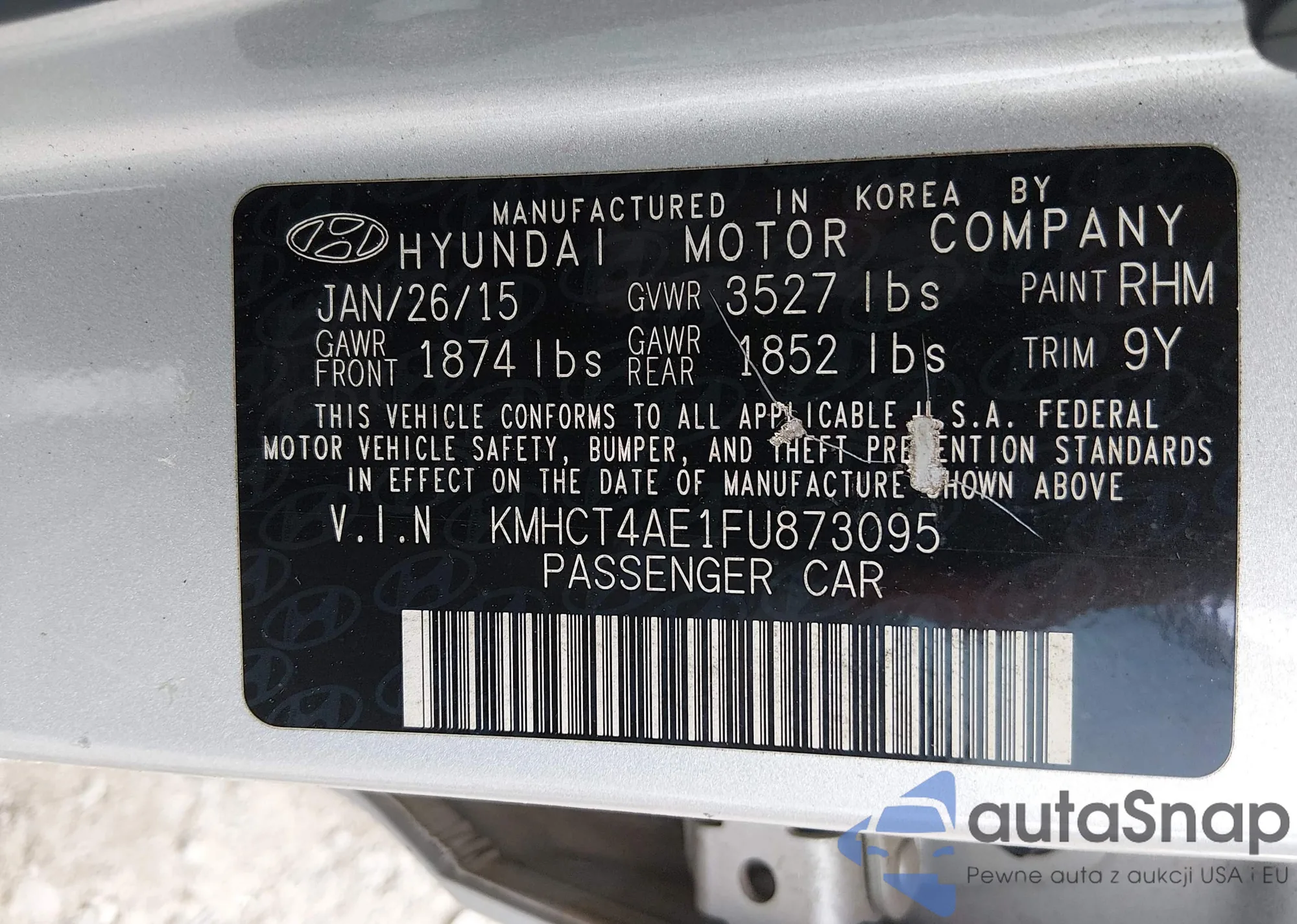 • VIN KMHCT4AE1FU873095