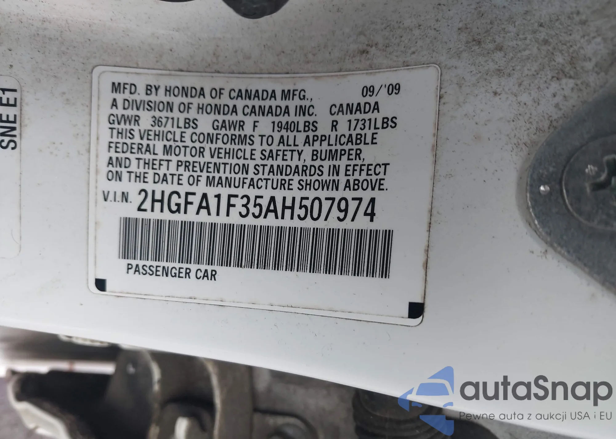• VIN 2HGFA1F35AH507974