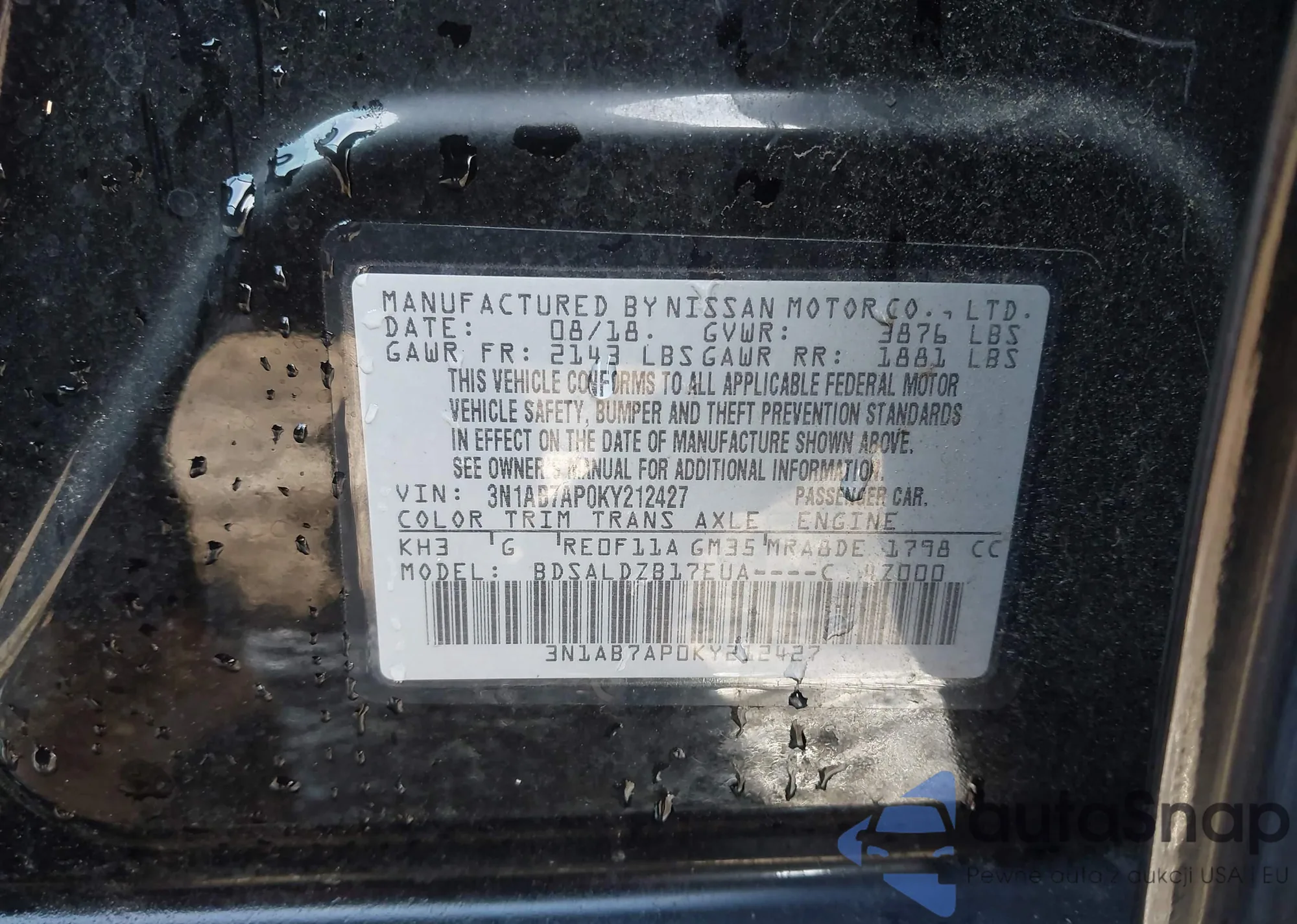 • VIN 3N1AB7AP0KY212427