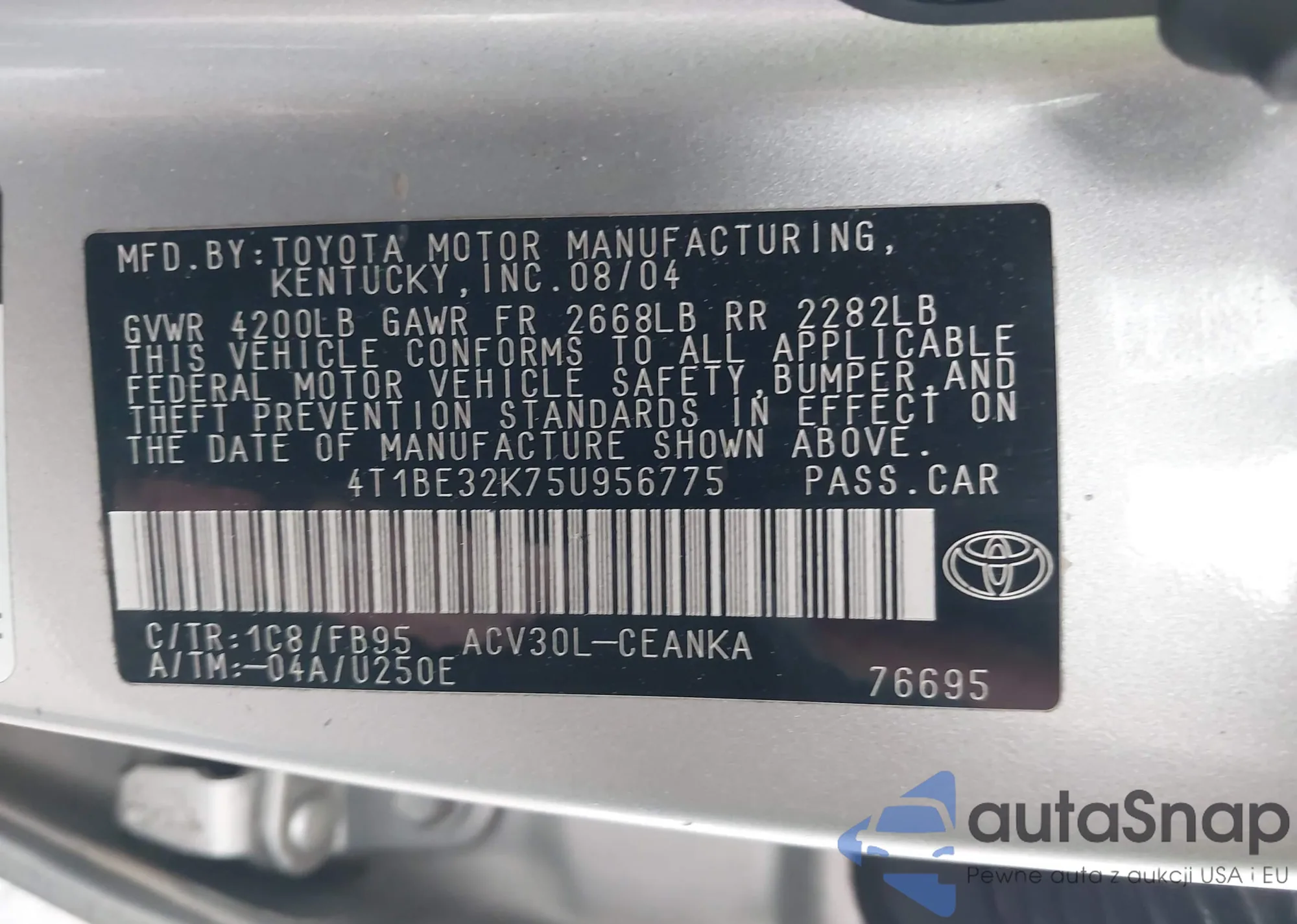 • VIN 4T1BE32K75U956775