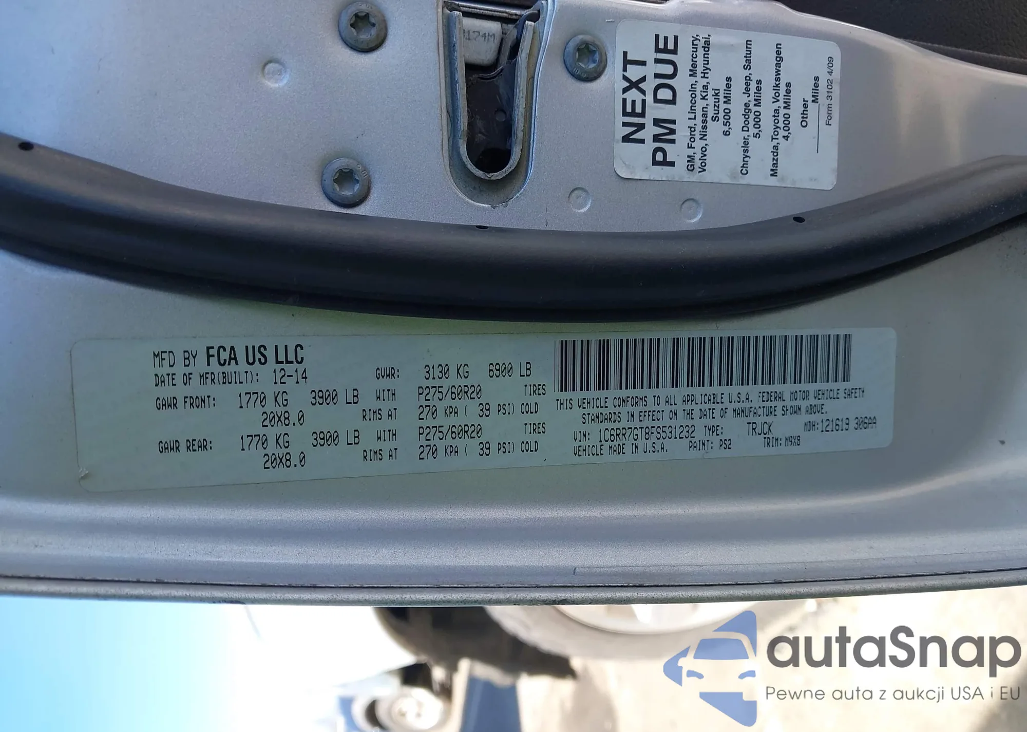 • VIN 1C6RR7GT8FS531232