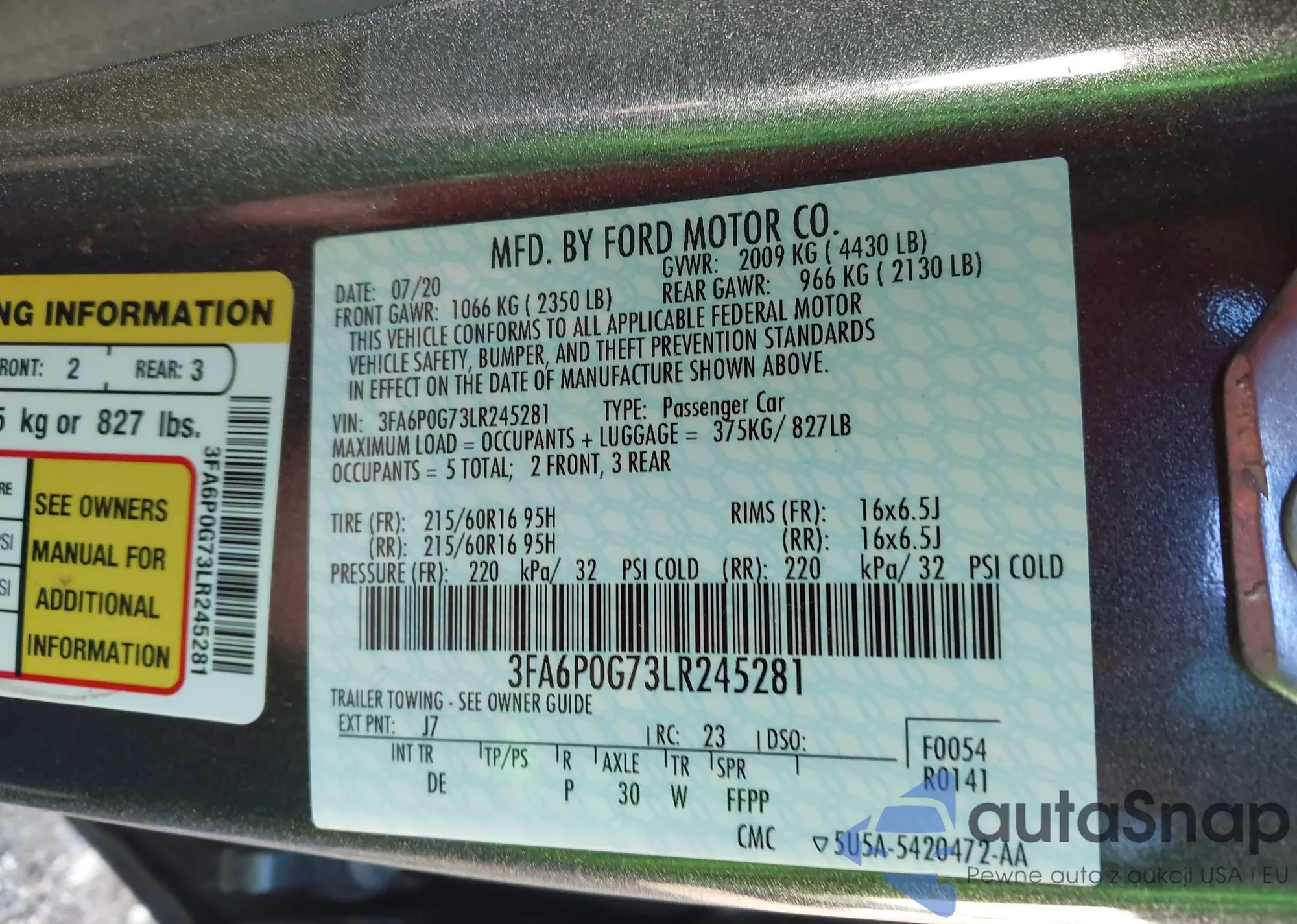 • VIN 3FA6P0G73LR245281