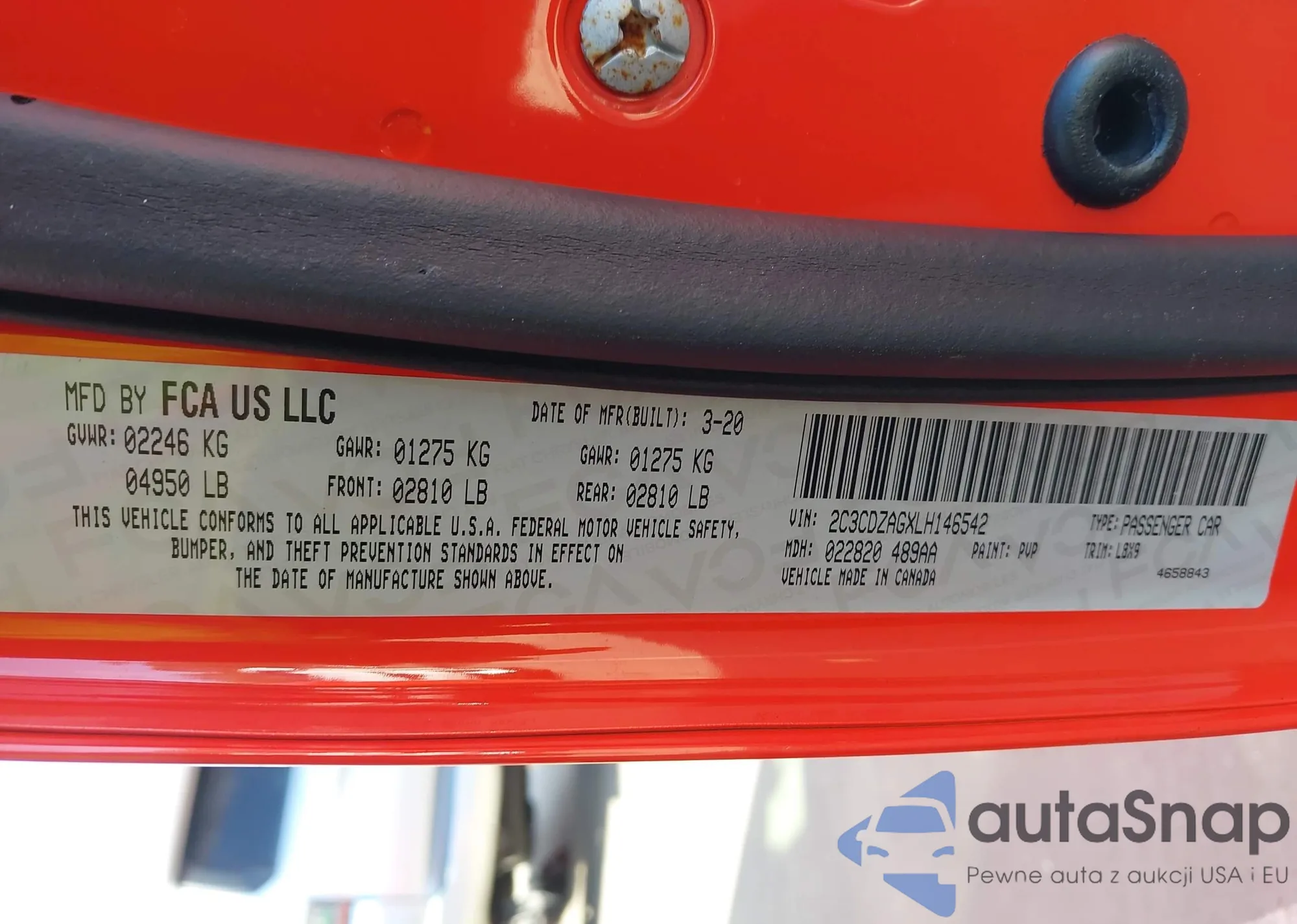 • VIN 2C3CDZAGXLH146542