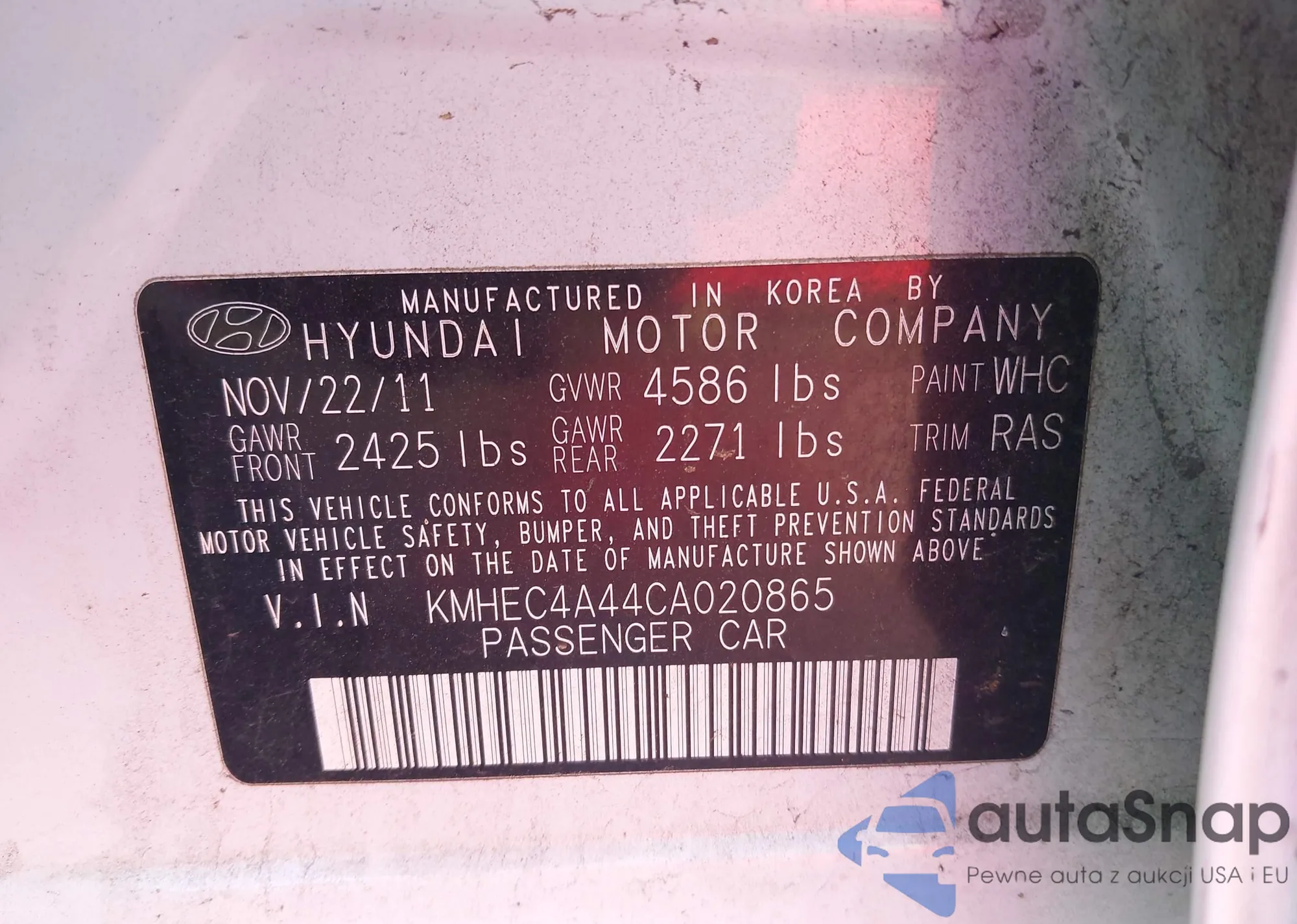 LOT: 44236210 VIN: KMHEC4A44CA020865
