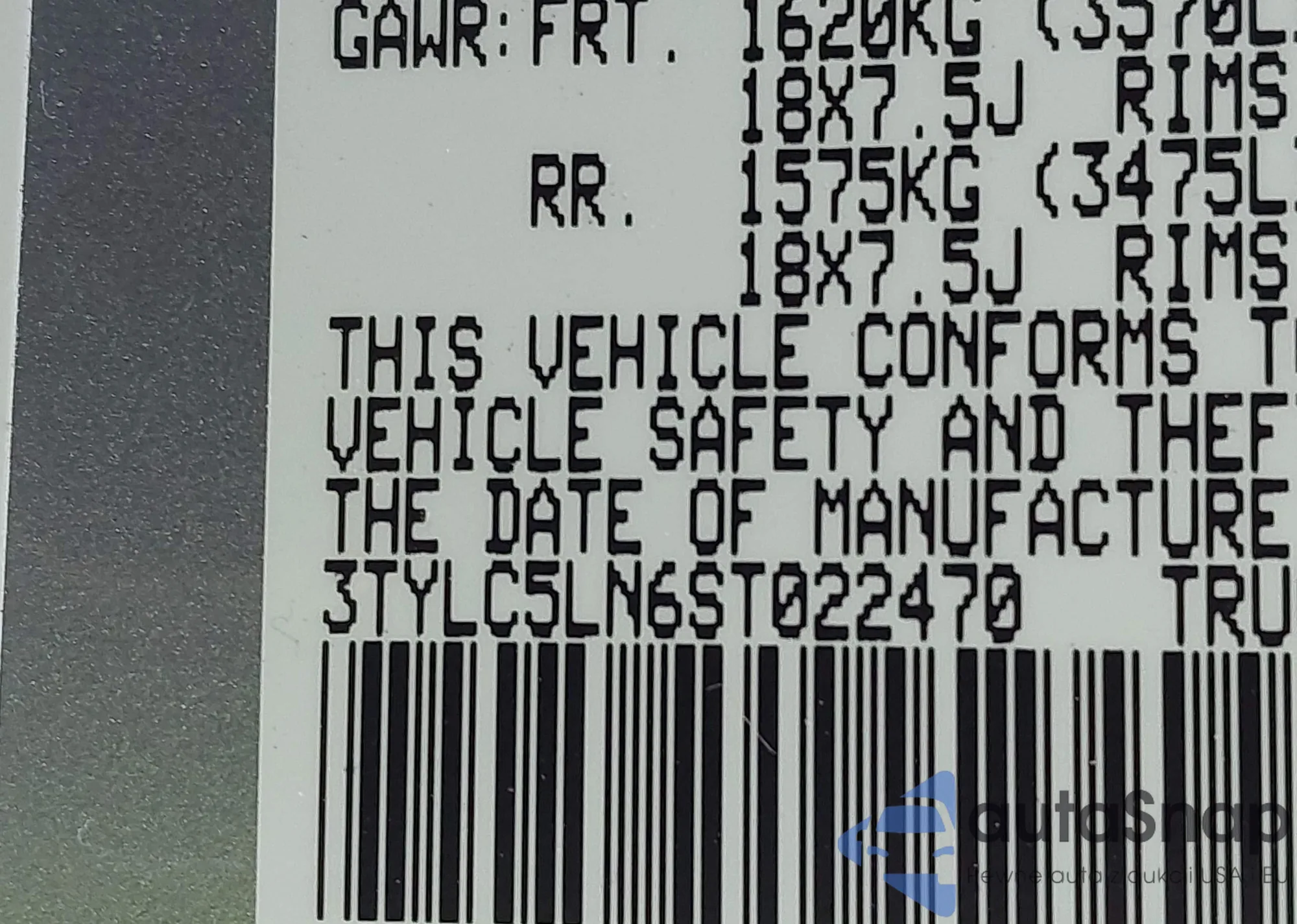 • VIN 3TYLC5LN6ST022470