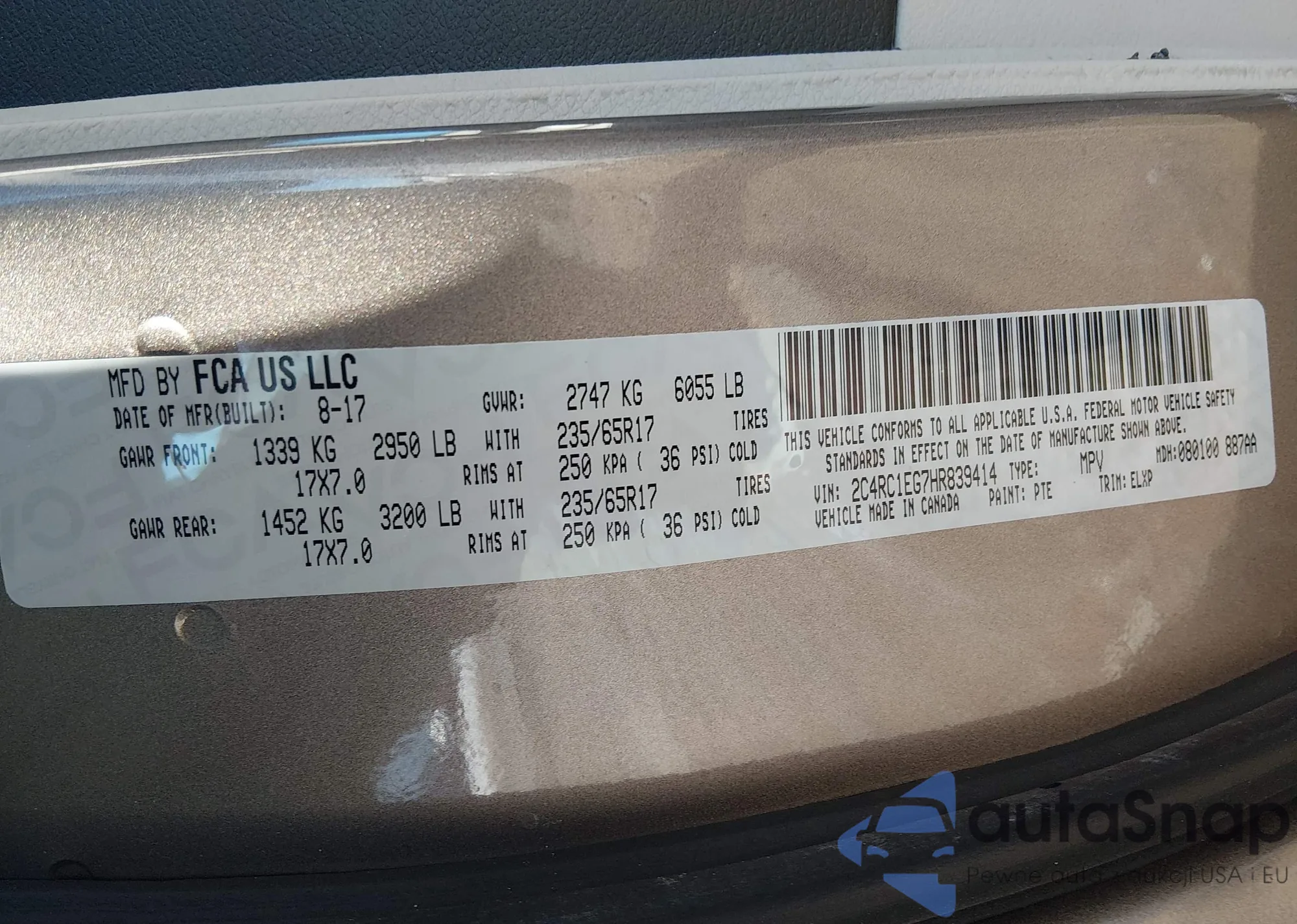 • VIN 2C4RC1EG7HR839414
