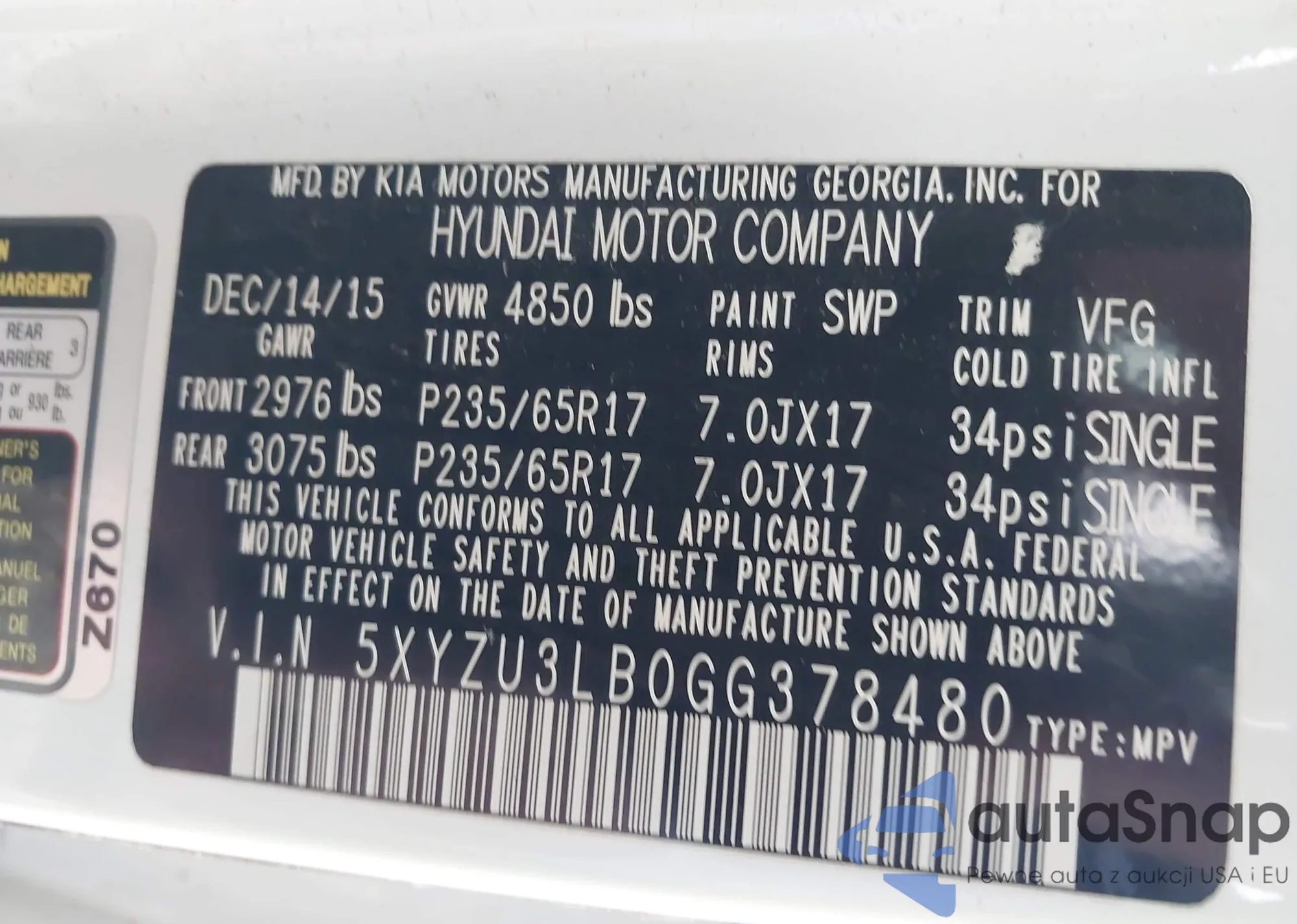 • VIN 5XYZU3LB0GG378480