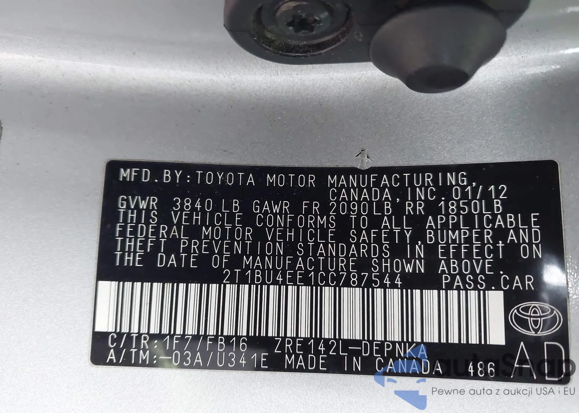 • VIN 2T1BU4EE1CC787544