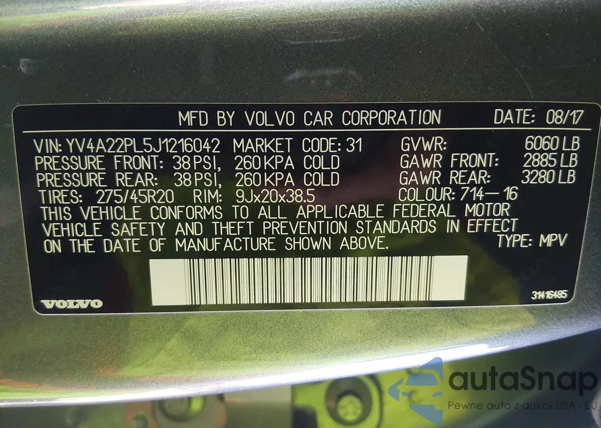 • VIN YV4A22PL5J1216042