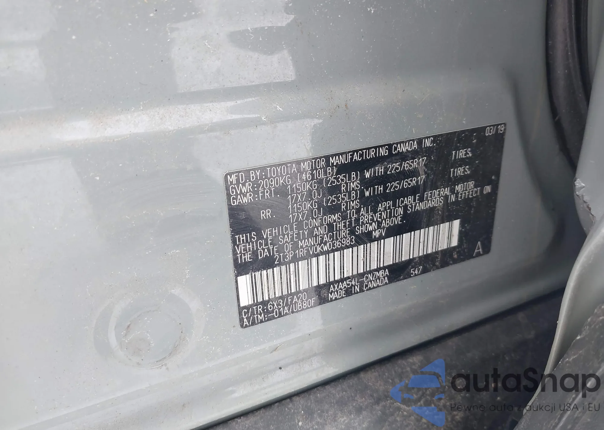 • VIN 2T3P1RFV0KW036983