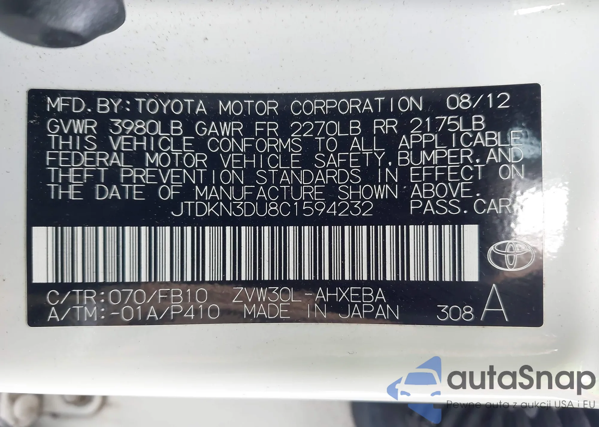 • VIN JTMDF4DV8A5020370