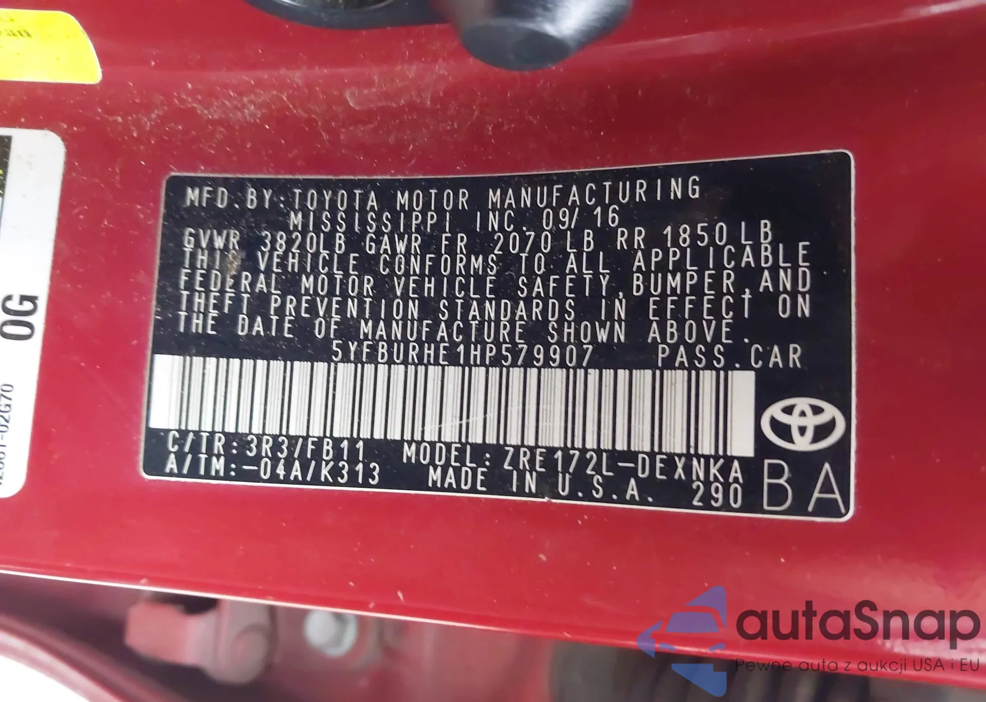 • VIN 5YFBURHE1HP579907