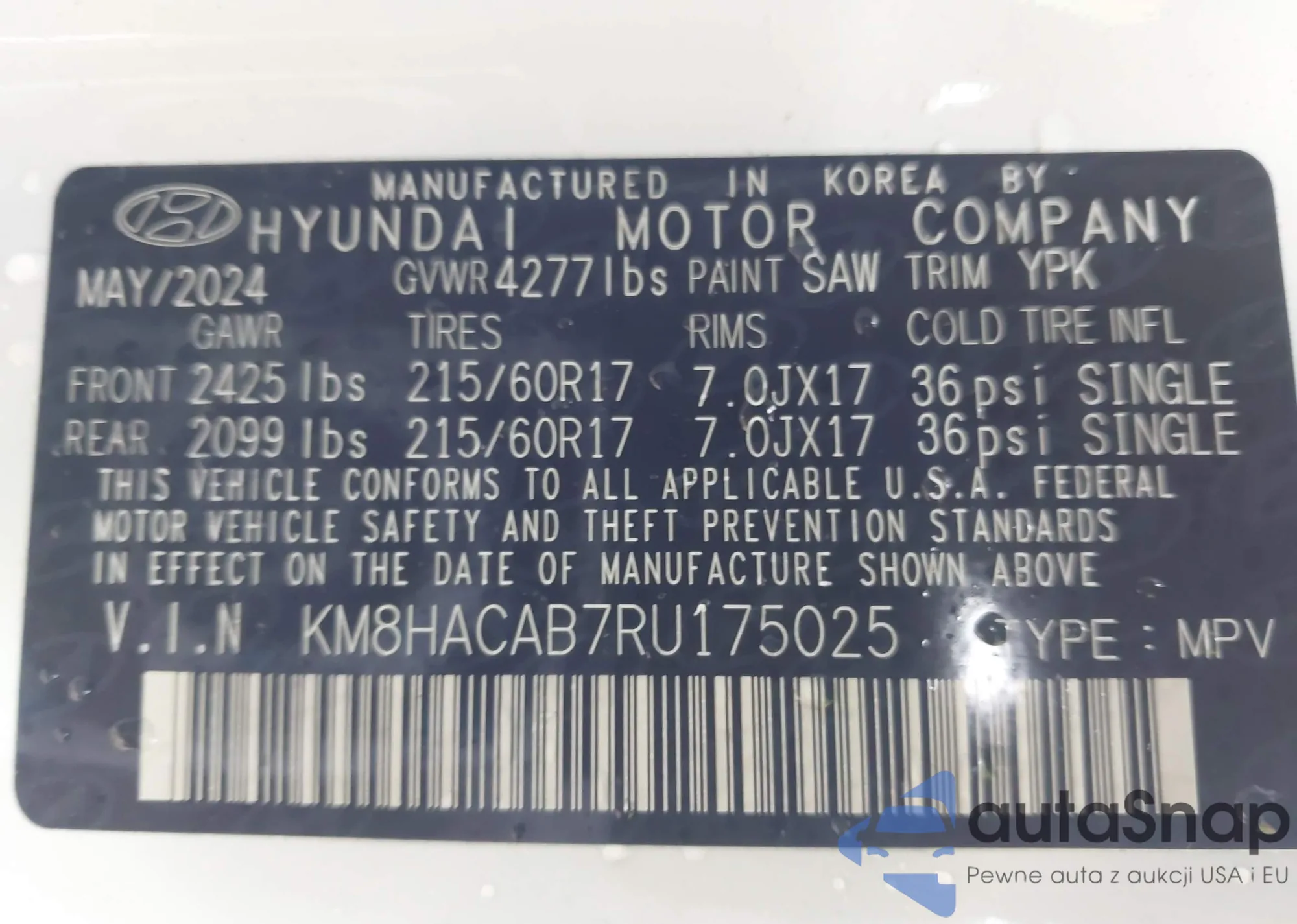 • VIN KM8HACAB7RU175025