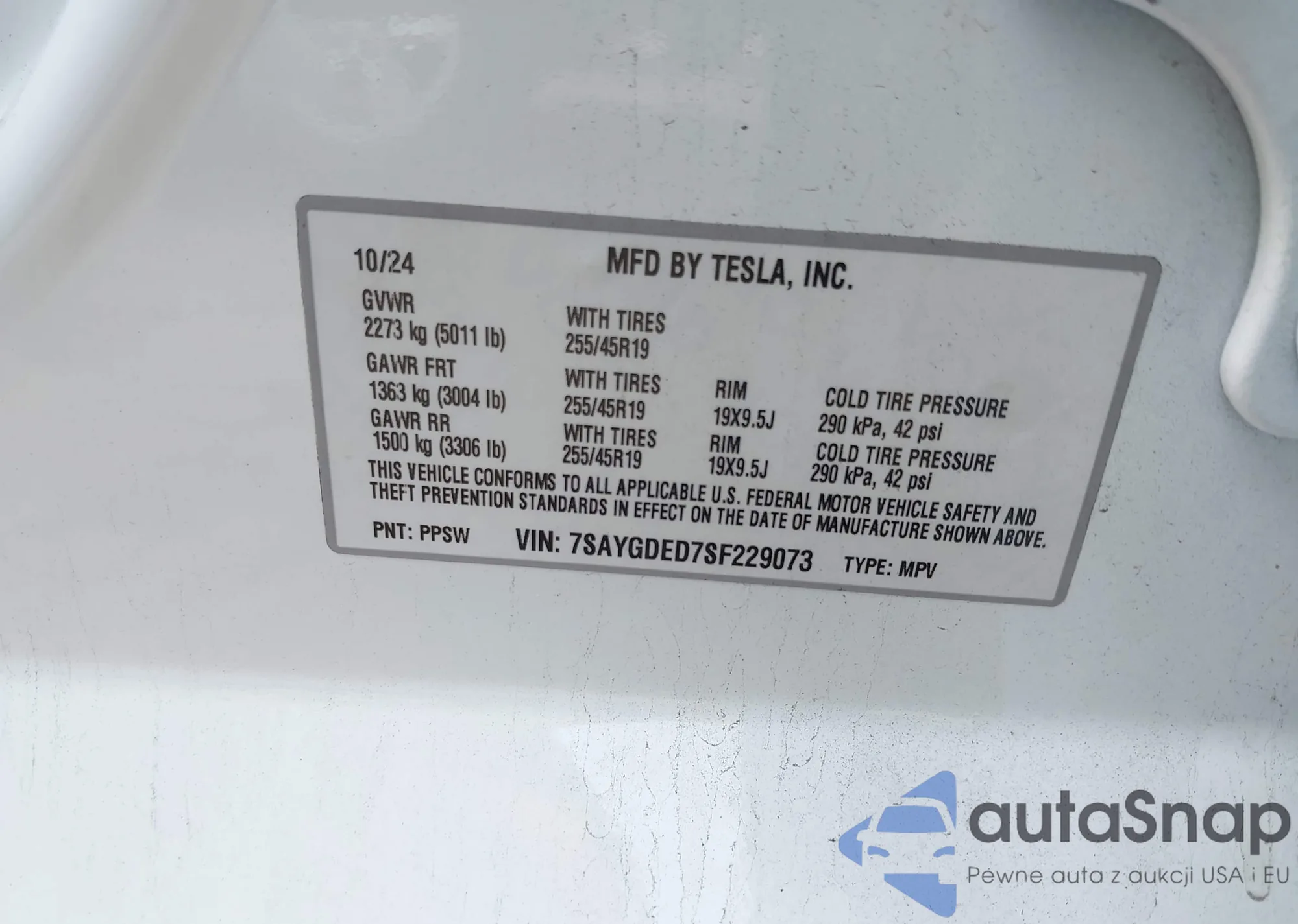 • VIN 7SAYGDED7SF229073