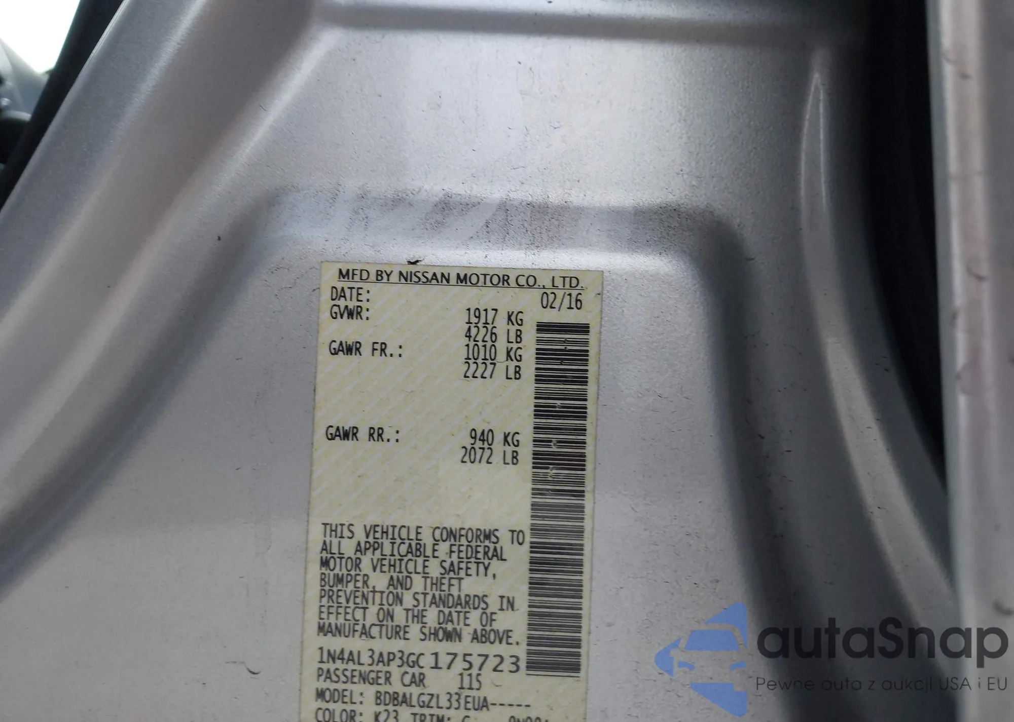 • VIN 1N4AL3AP3GC175723