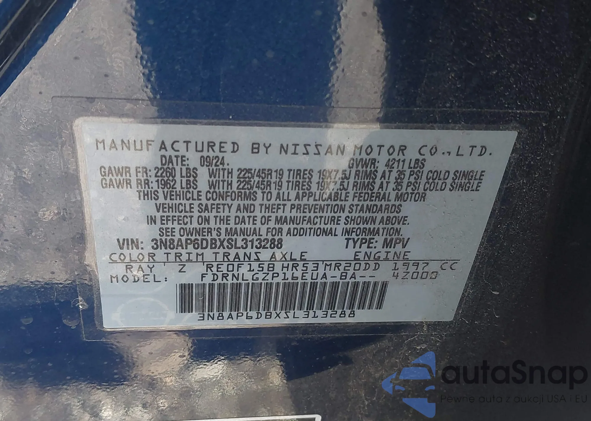 • VIN 3N8AP6DBXSL313288