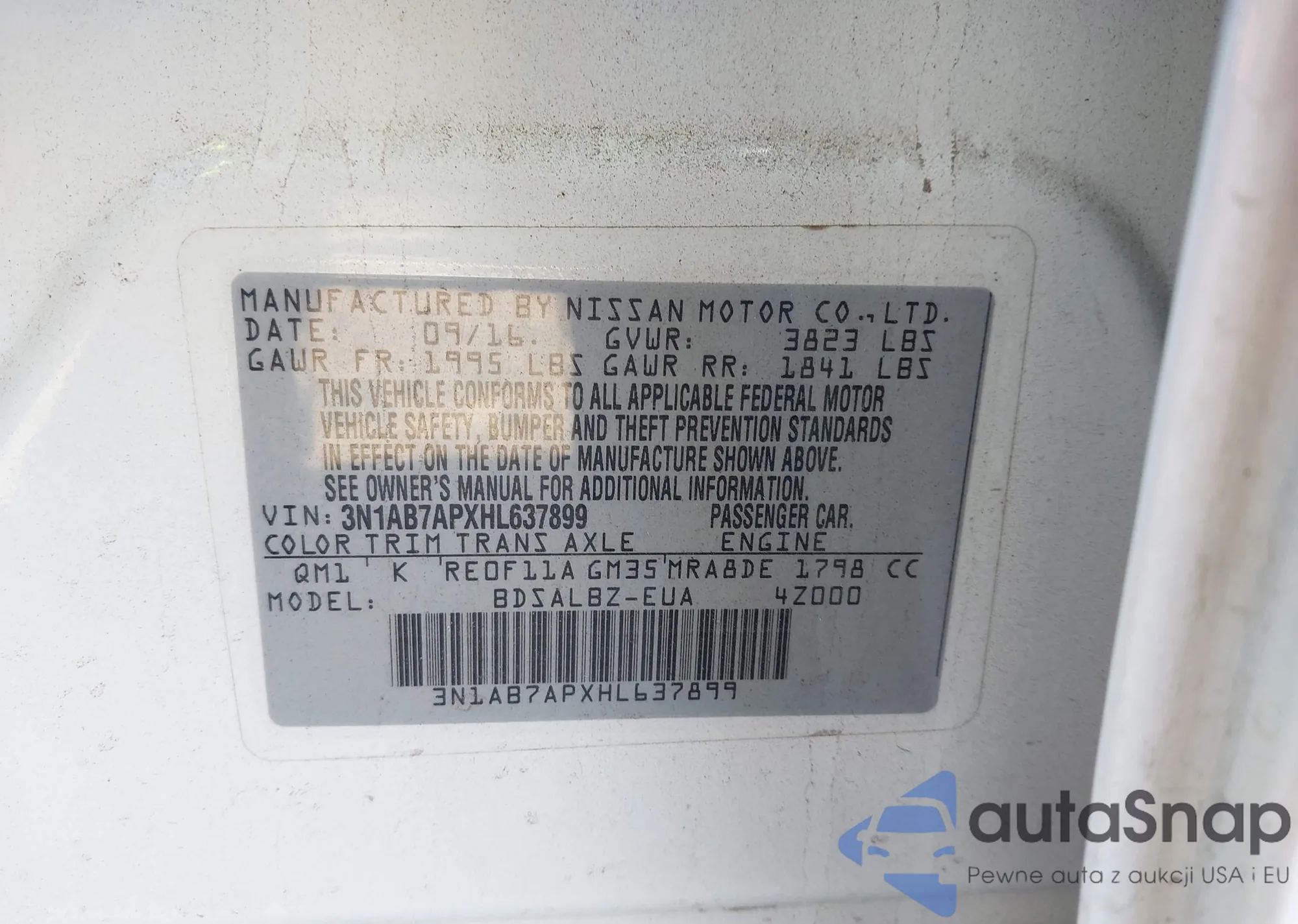 • VIN 3N1AB7APXHL637899