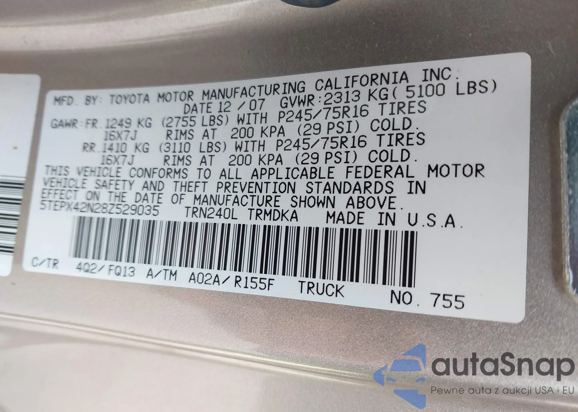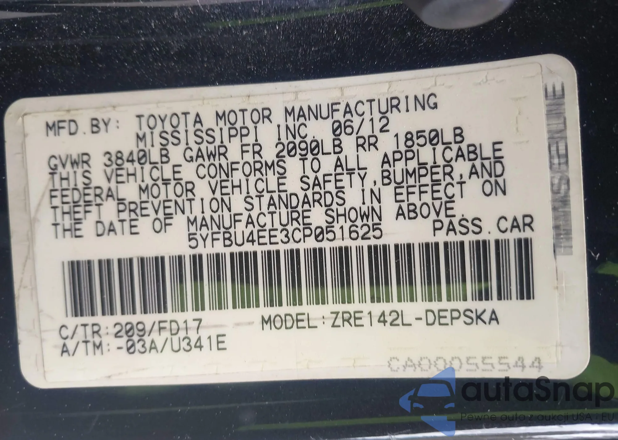 • VIN 5YFBU4EE3CP051625
