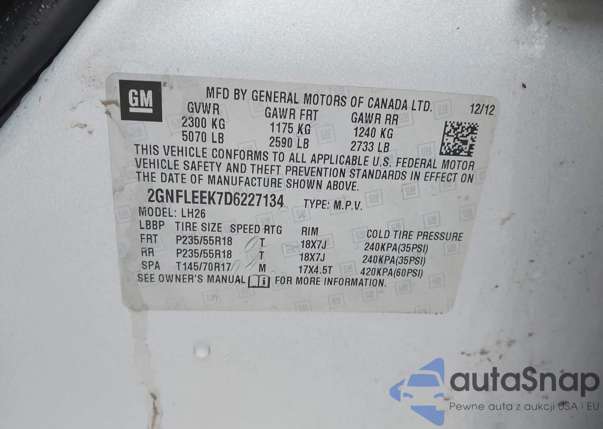 • VIN 2GNFLEEK7D6227134