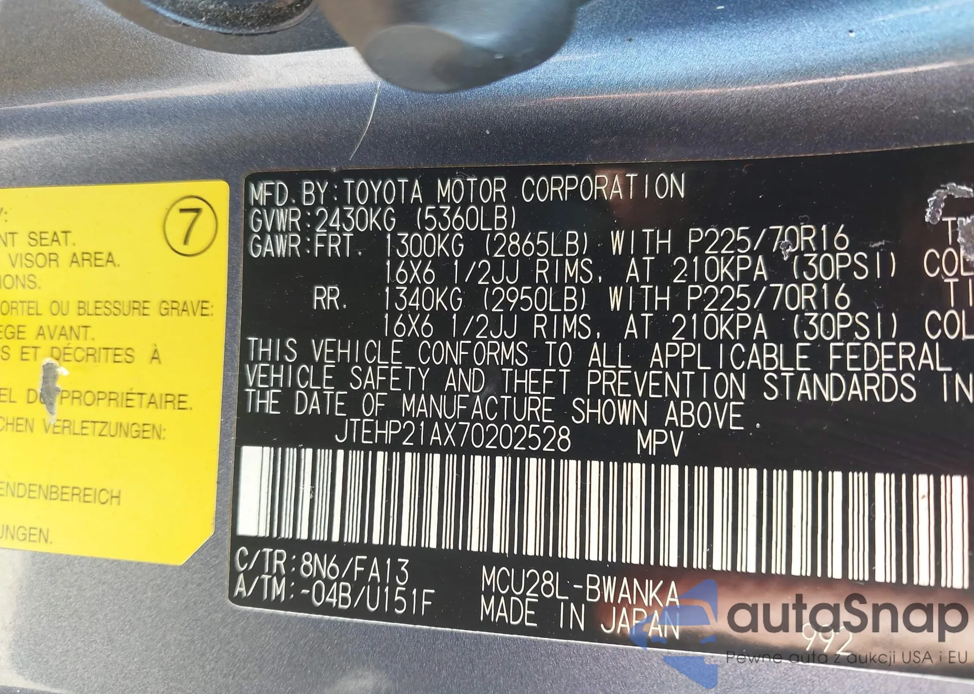 LOT: 43557456 VIN: JTMBD31V176049448