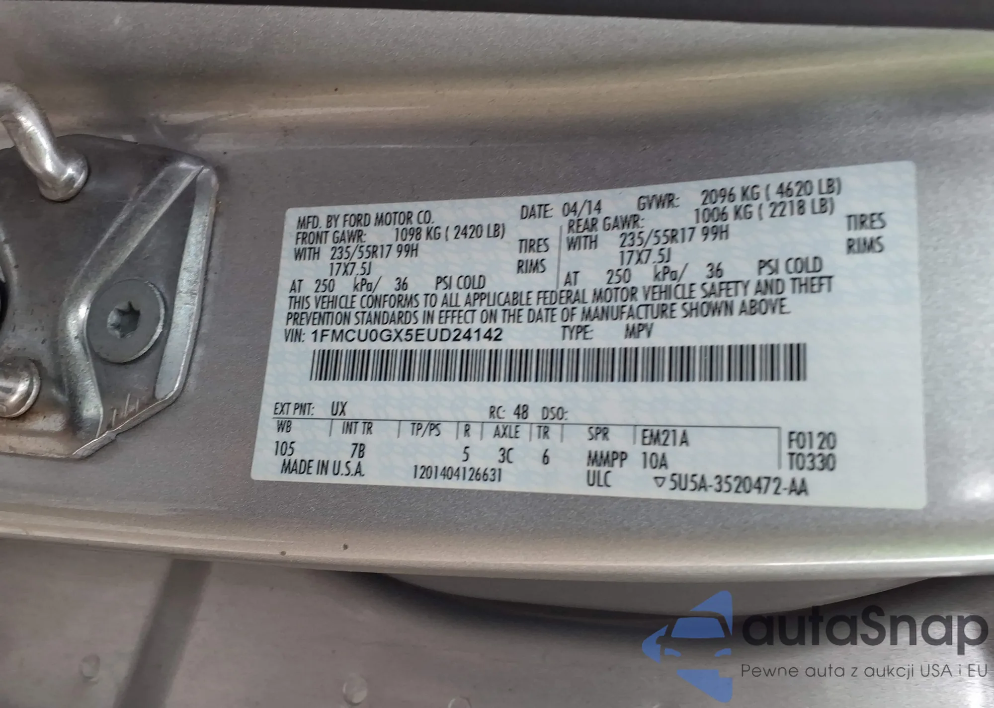 LOT: 44412507 VIN: 1FMCU0GX5EUD24142