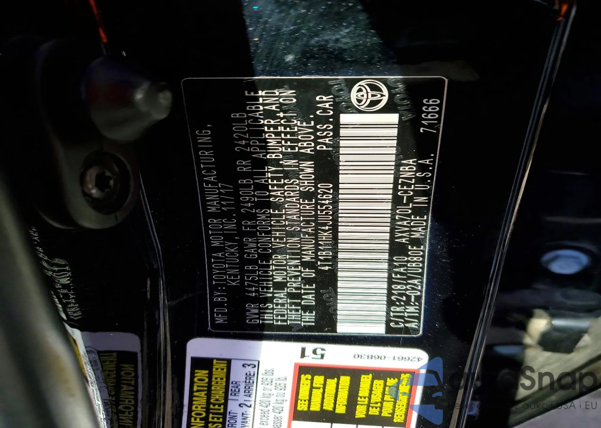 • VIN 4T1B11HK4JU554620
