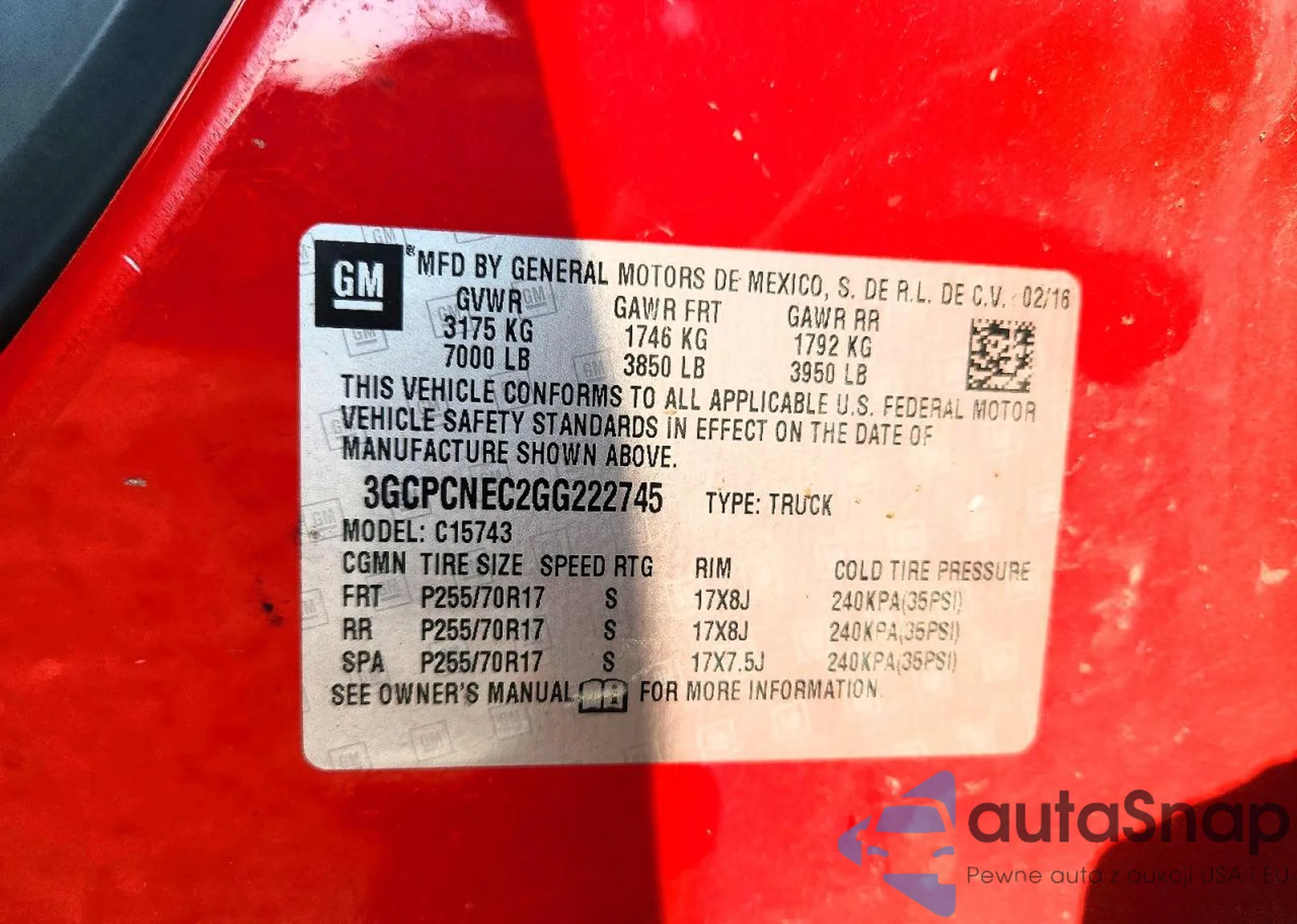 • VIN 3GCPCNEC2GG222745