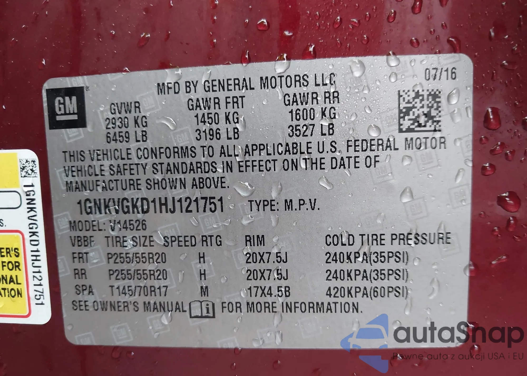 LOT: 43961079 VIN: 1GNKVGKD1HJ121751