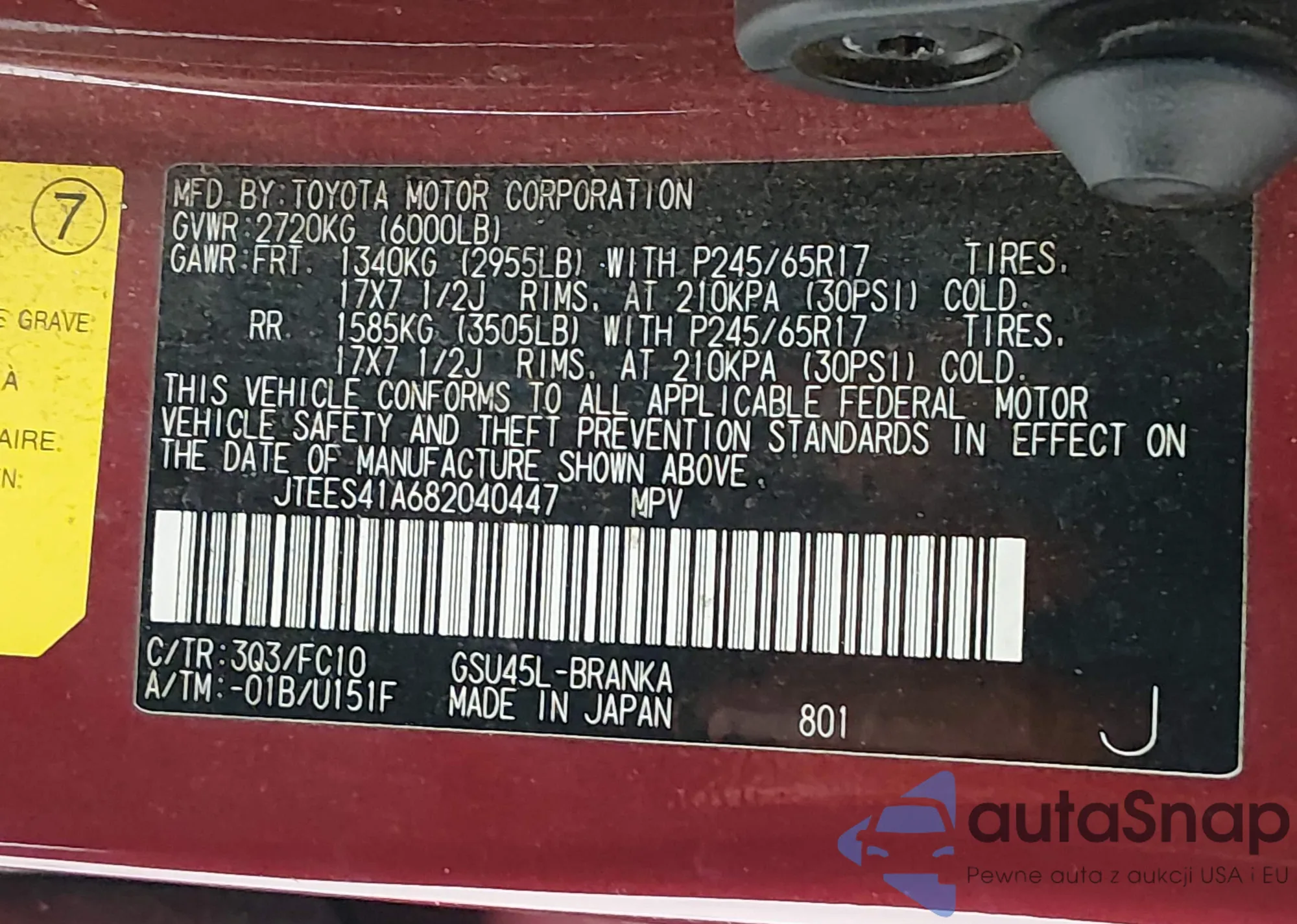 LOT: 44453750 VIN: JTEES41A682040447