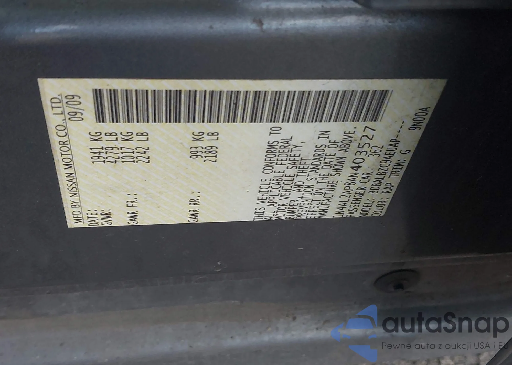 LOT: 44166747 VIN: 1N4AL2AP8AN403527